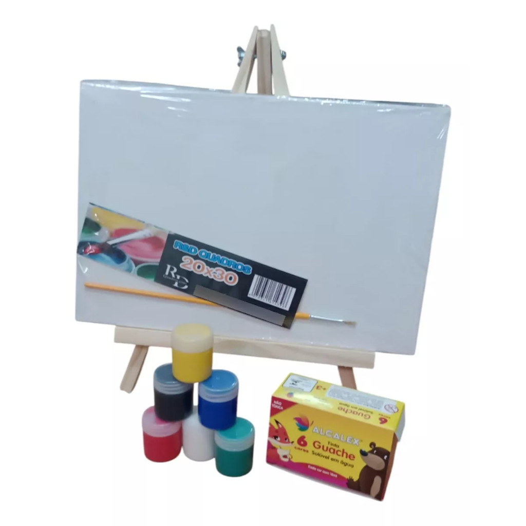 Kit Telas Pintura 20x30cm Algodão Uso Artístico +Cavalete 25x39 +6 guaches+ pincel Leia a Descrição