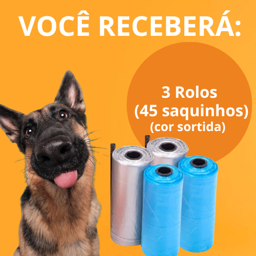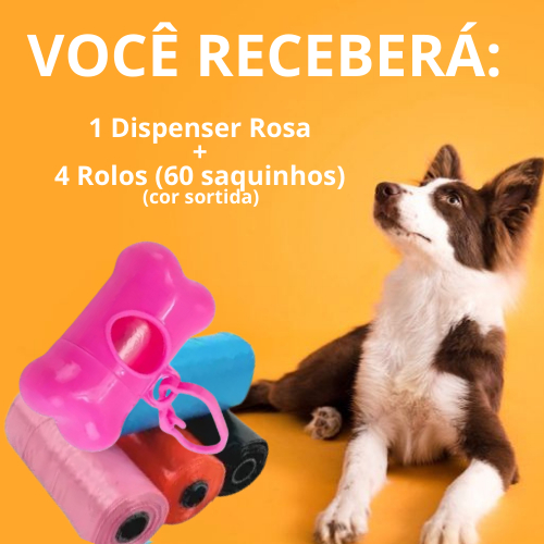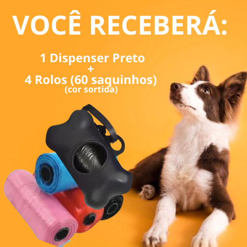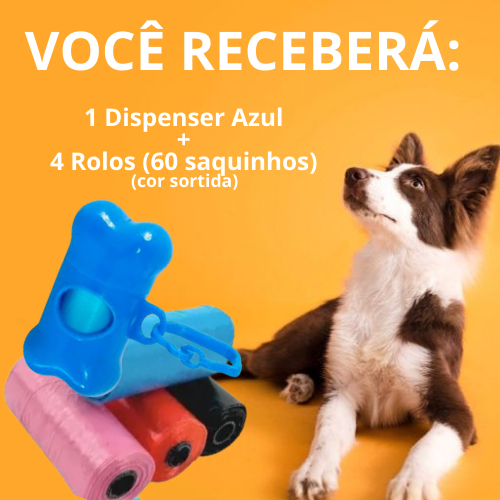 Kit Cata Caca Pet Saquinhos Higiênicos Suporte + 4 Rolos