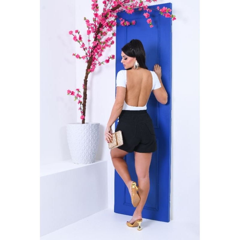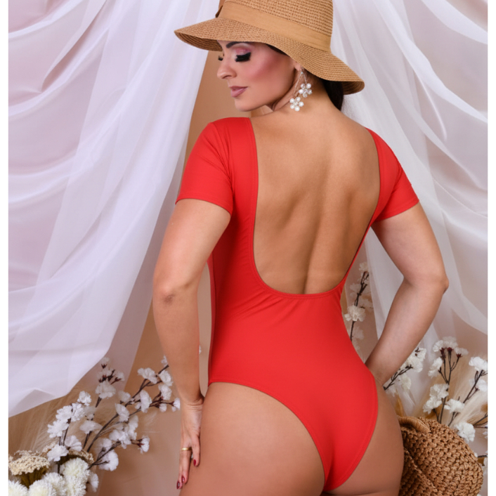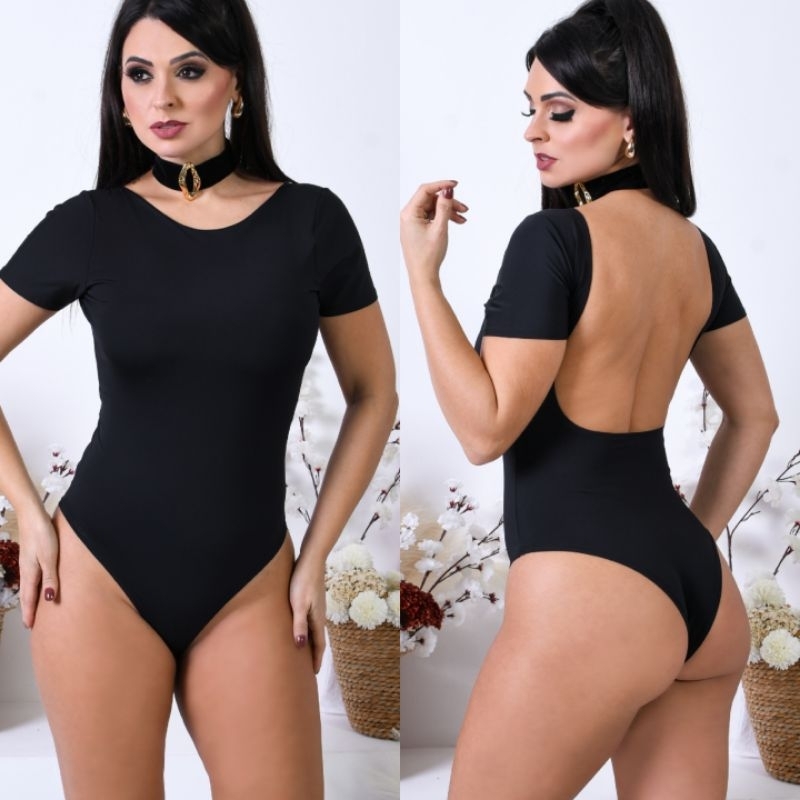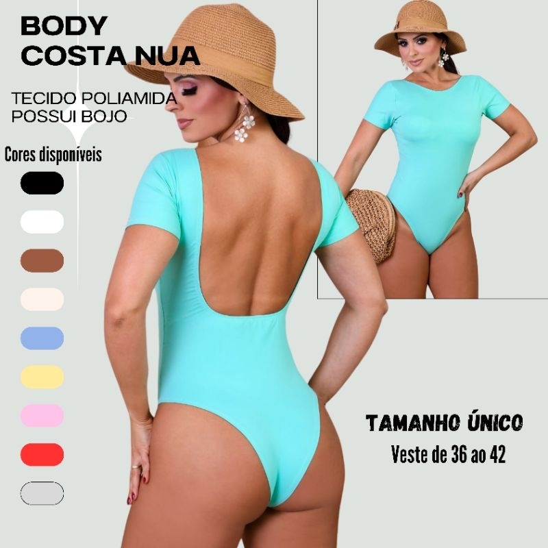 body costa nua manga curta costa aberta poliamida com bojo básico casual tendencia