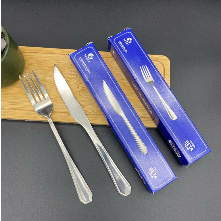 Kit 24 - 12- Faca De Churrasco , 12 - Garfo De Mesa. COLEÇÃO BETA NOBRE