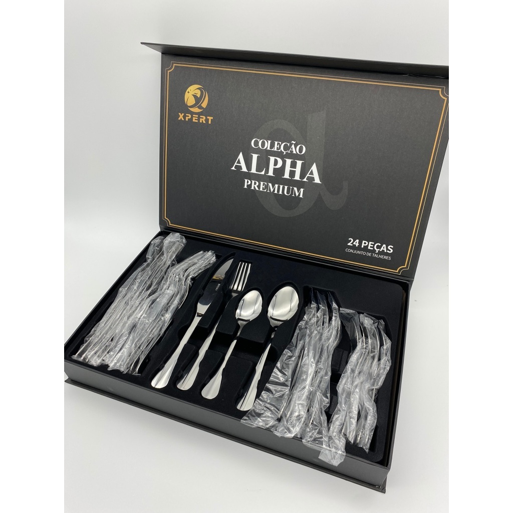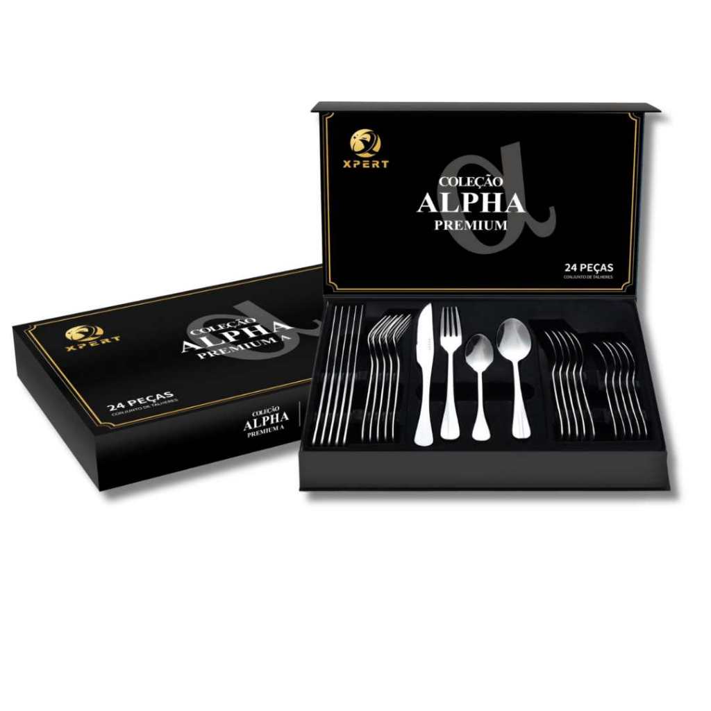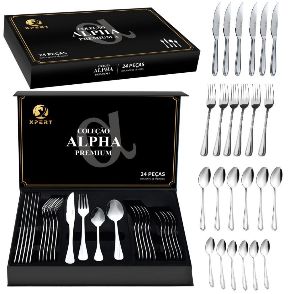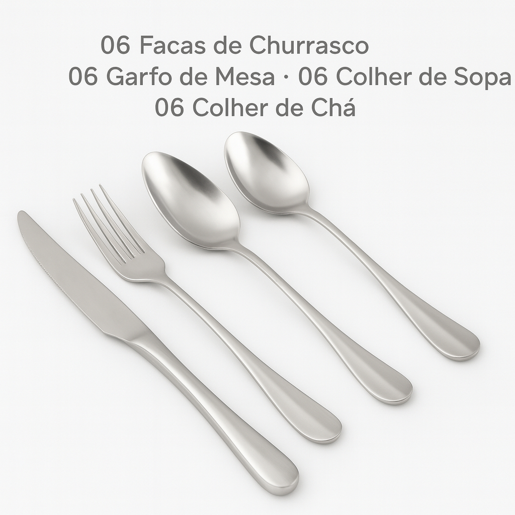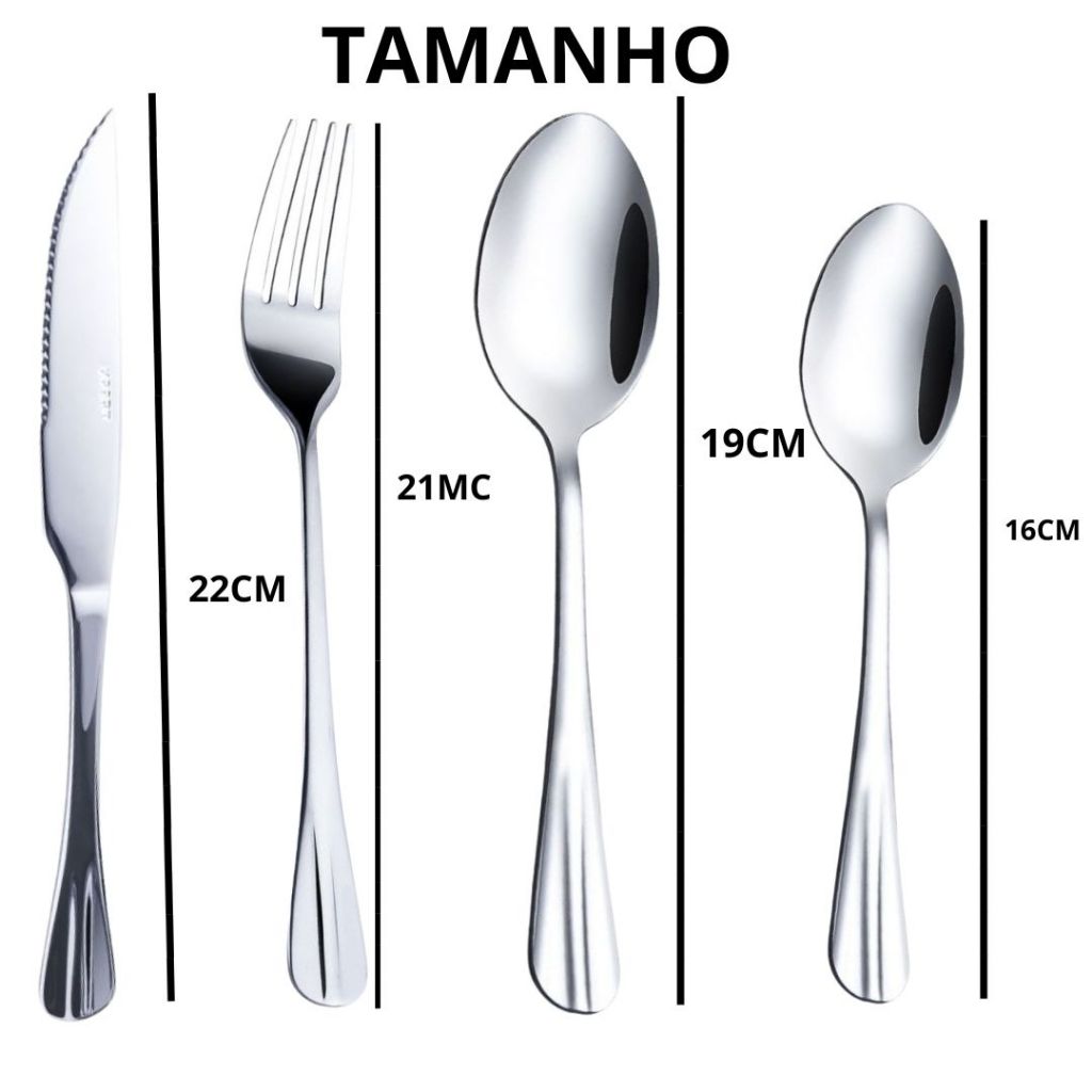 Kit 24 Talheres Grandes Inox 6 Faca 6 Garfo 6 Colher Sopa 6 Colher Sobremesa Resistente Faqueiro