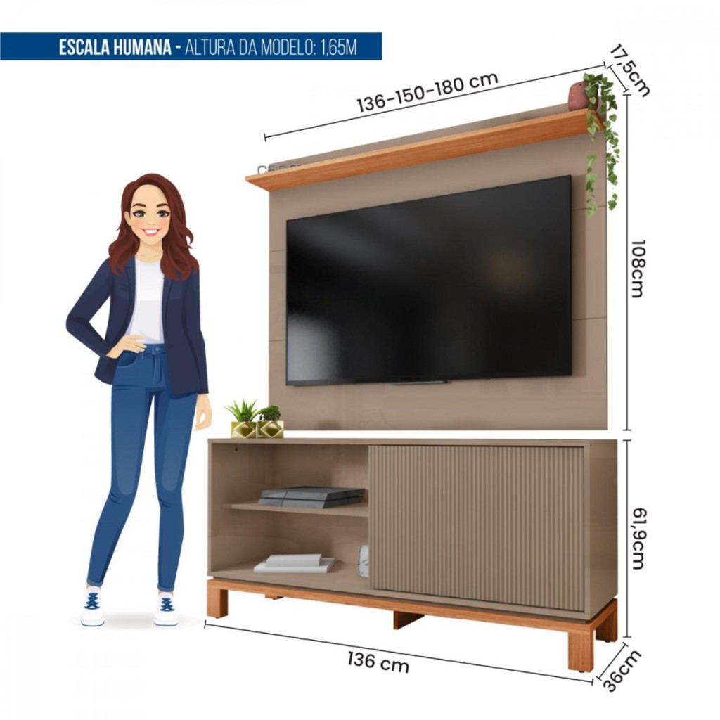 Rack com Painel para TV 55 Polegadas Mondrian 1.3 Sued e Freijó