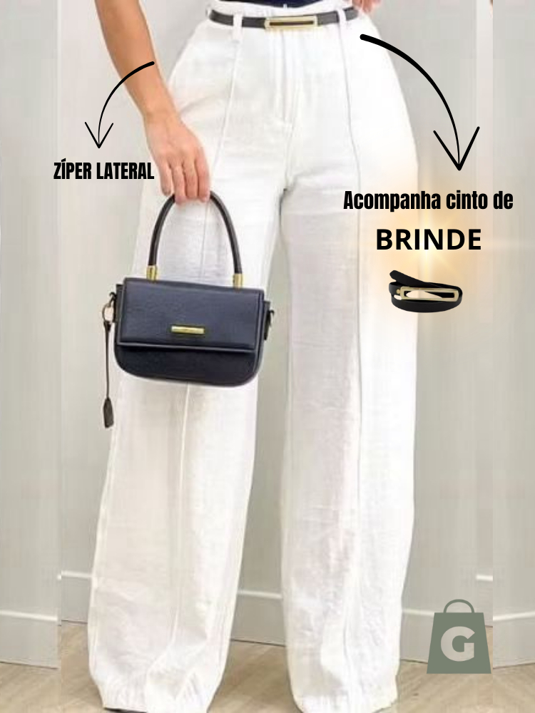 Calça Pantalona Alfaiataria Social Feminina Com Cinto Lançamento Moda Luxo Elegancia Socia