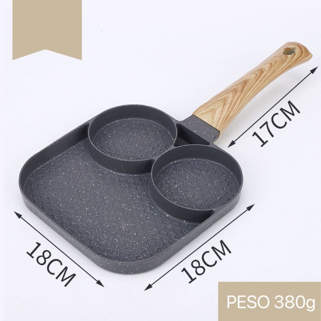 Frigideira Antiderente Multifuncional 4 em 1/3em 1 / 7 OU 4 Furos Ovos Hambúrguer Omerlete Com Cabo De Madeira
