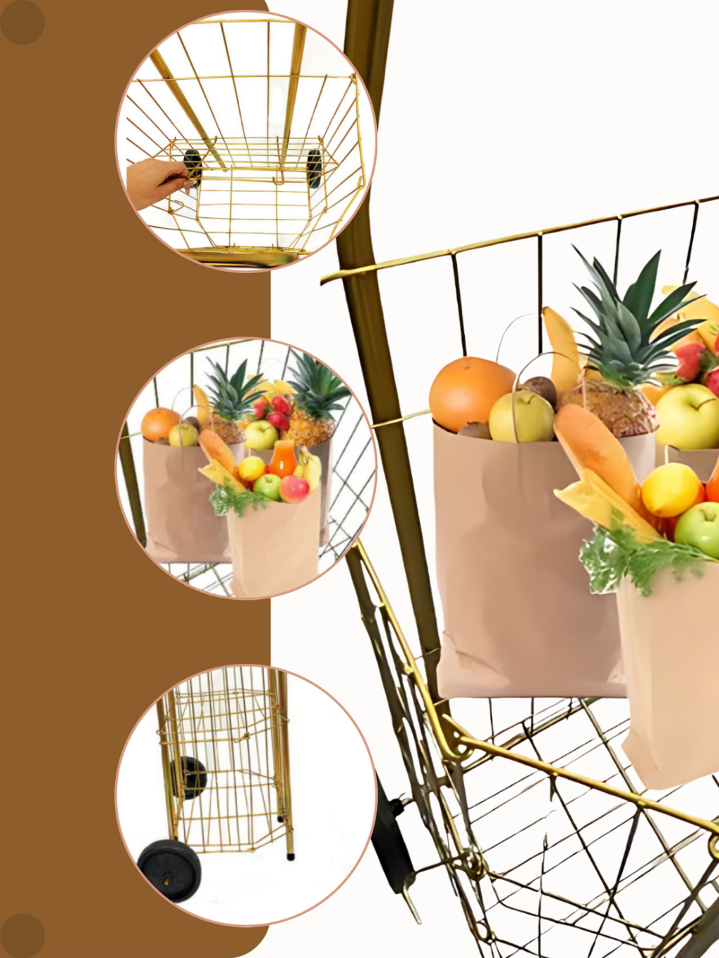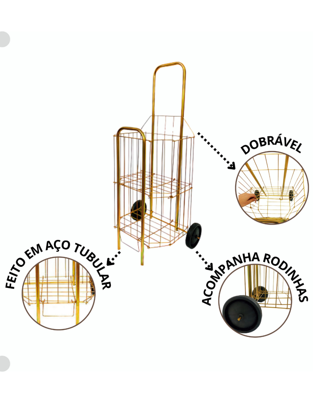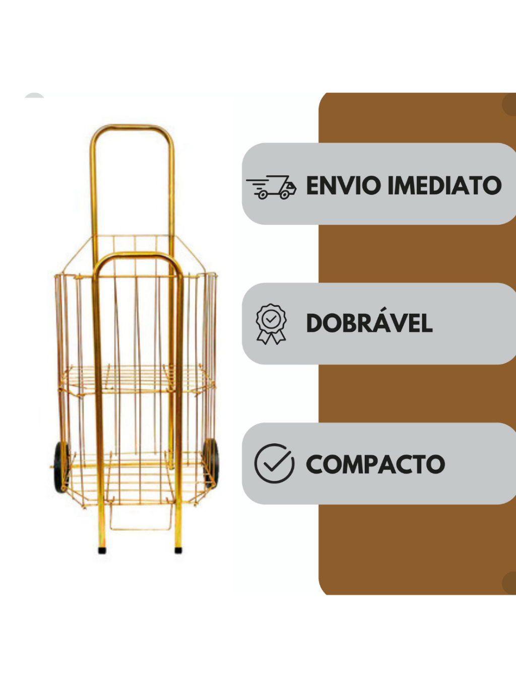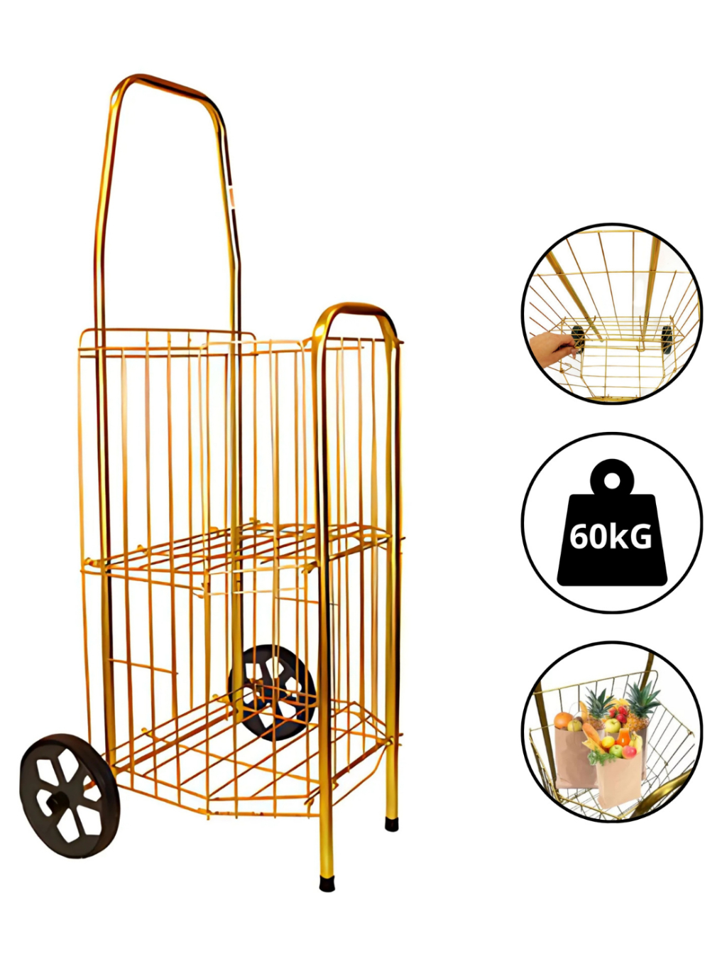 Carrinho De Feira Dobrável 2 Partes Dourado E Prata Compras Feira Compacto Ágil 60kg Reforçado