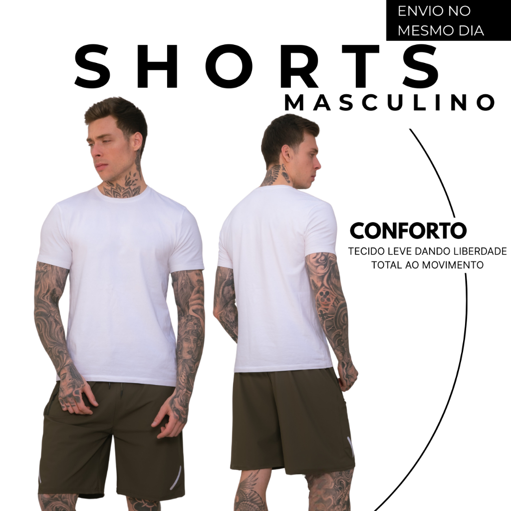 Short Bermuda Masculina Tactel Dry Fit Tecido Gelado Poliamida Seca Rapido Fitness com bolso Short para Academia Casual
