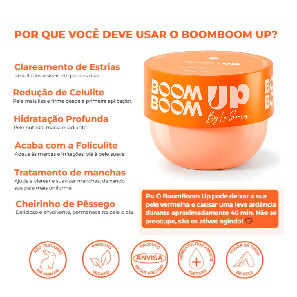 Peach Up Boom Boom Up Creme Corporal Termogênico Anti Celulite Estrias Antiacne Foliculite - 200g