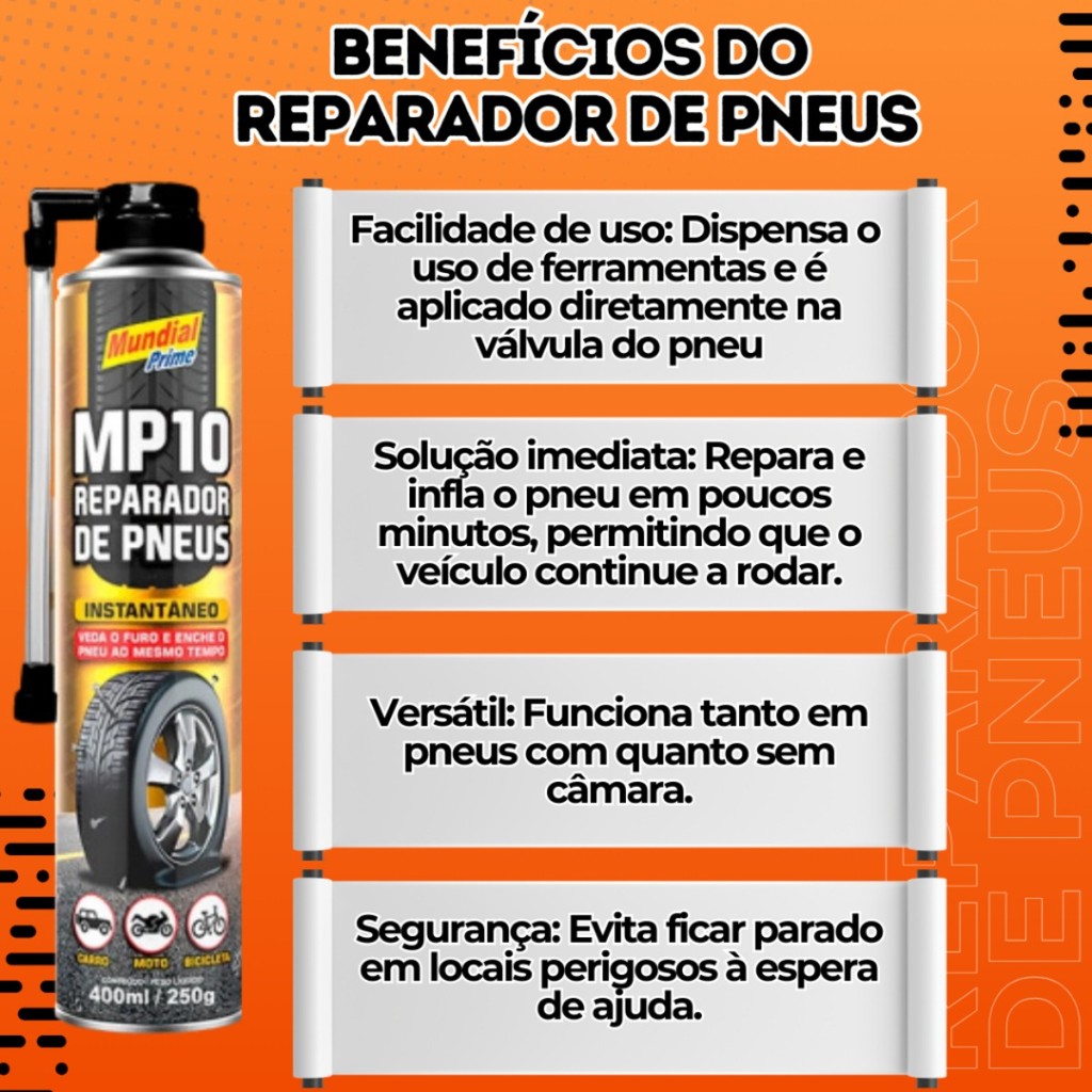 KIT 5 SPRAY REPARADOR DE PNEUS 400ML MP10 MUNDIAL PRIME