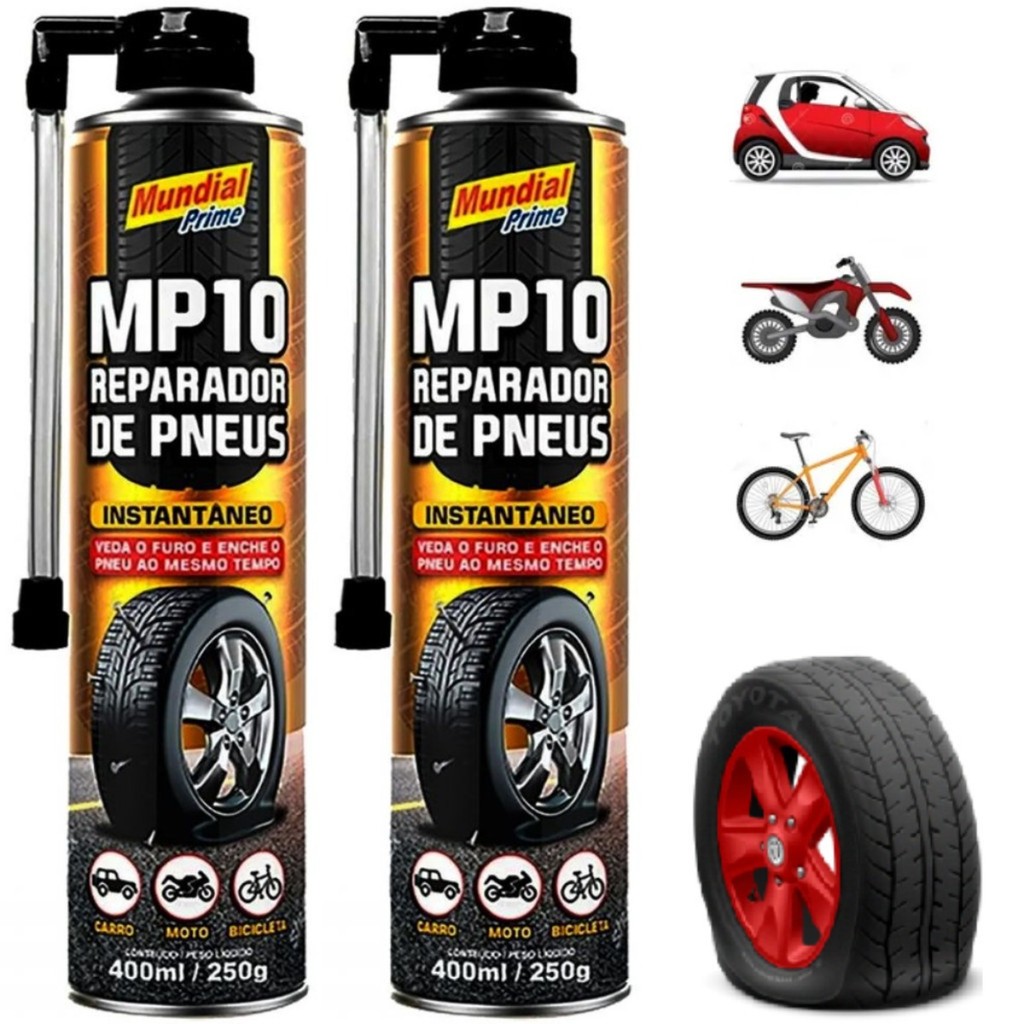 Kit 2 Spray Reparador de Pneus 400ml Veda Furo Instantâneo