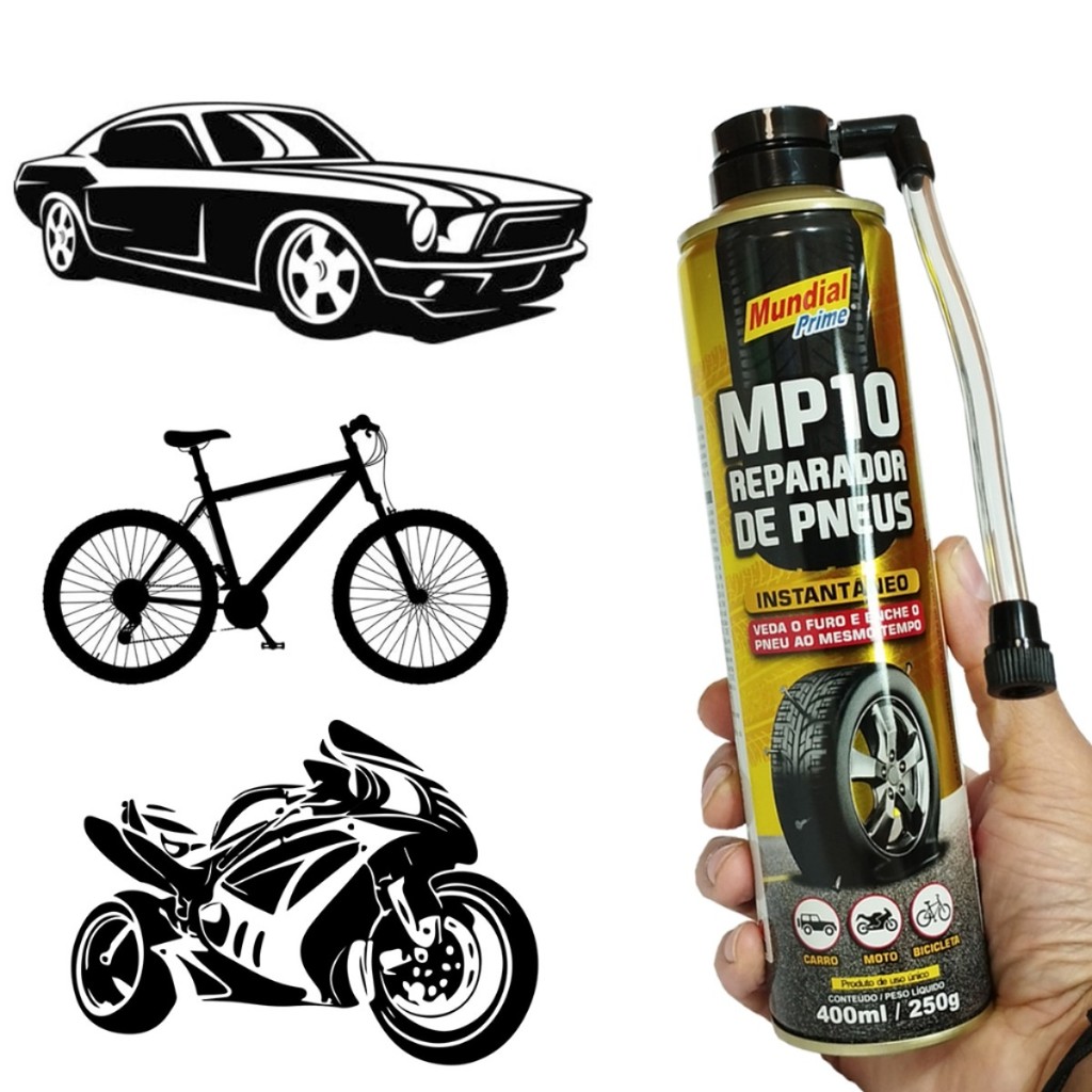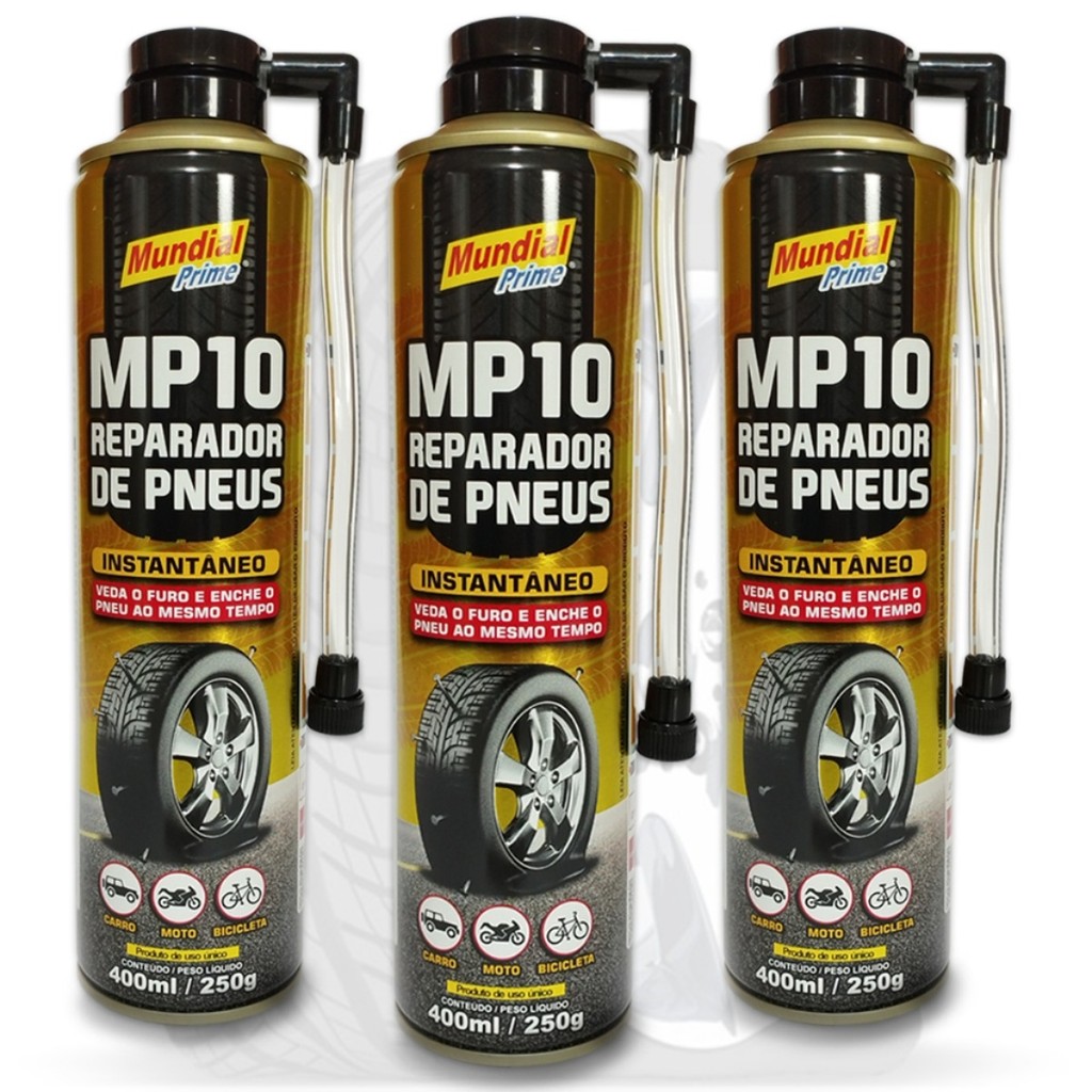 Kit 3 Reparador Pneu Spray Instantâneo Selante de Furo Carro Moto Bike SOS Veda Furo com Câmara/sem.
