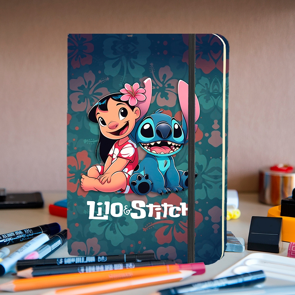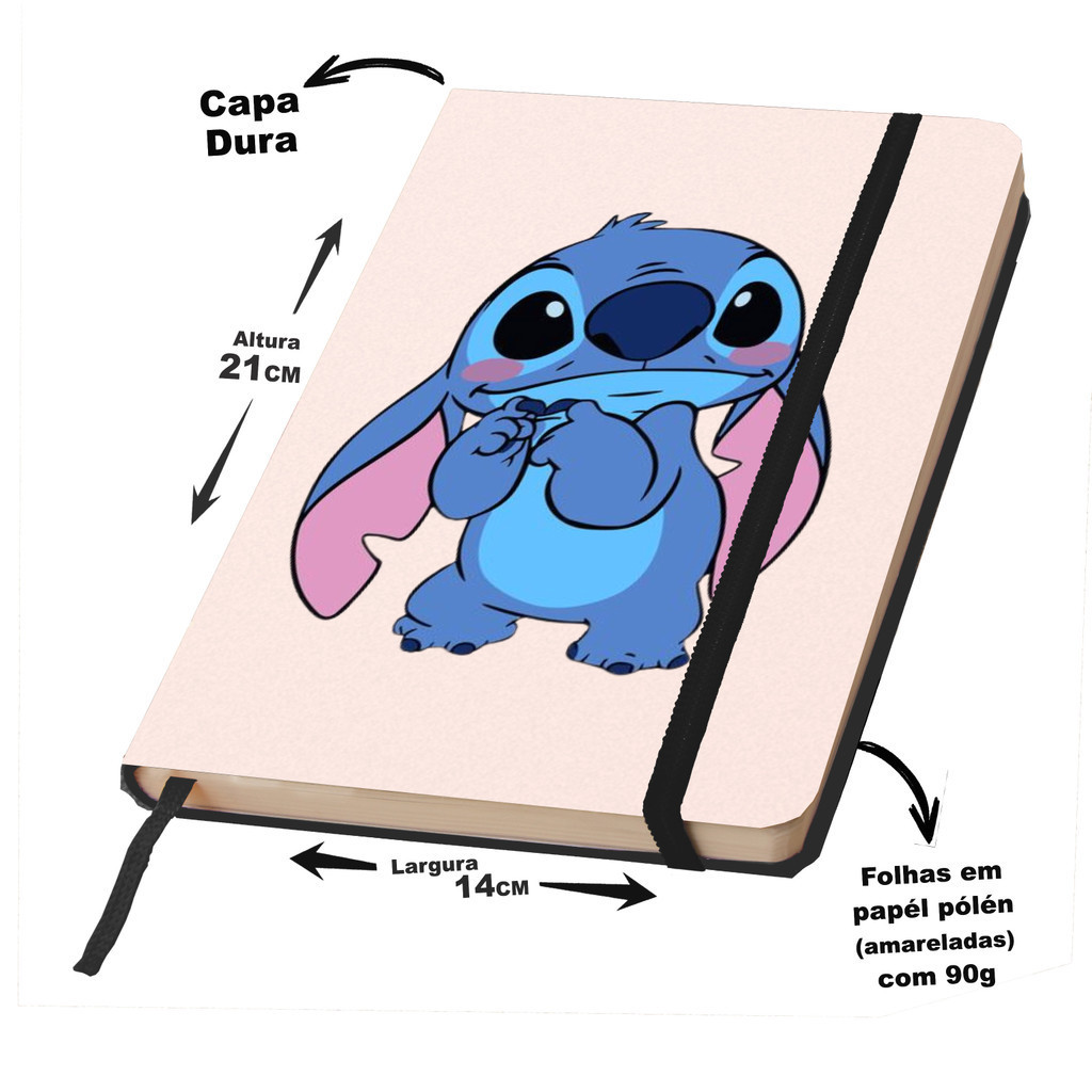Caderno Sketchbook ou de anotação Capa dura GRANDE 21X14cm tema Stitch