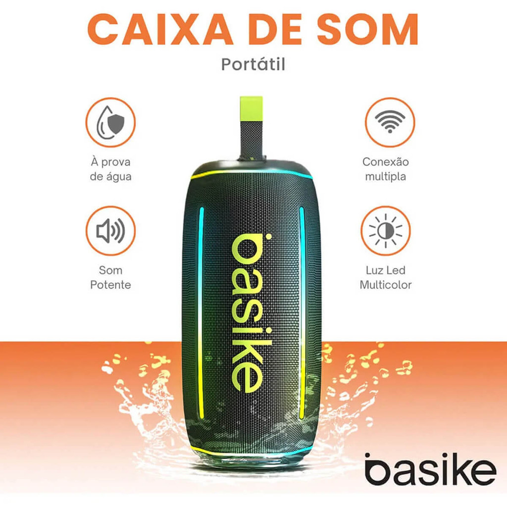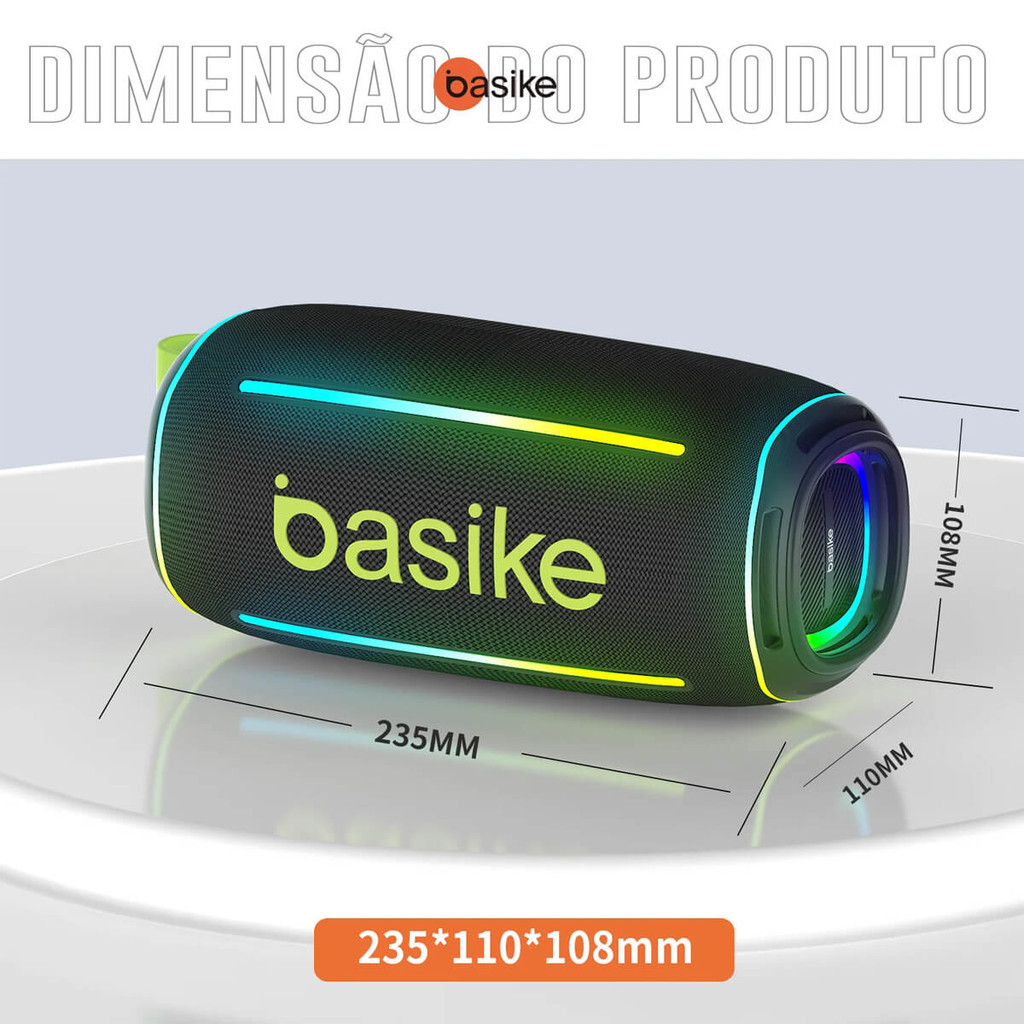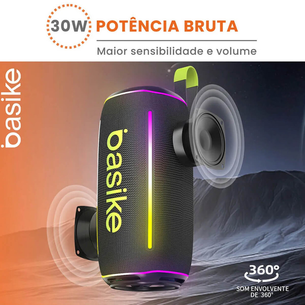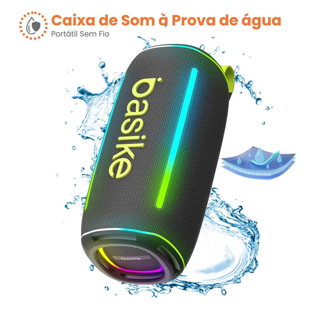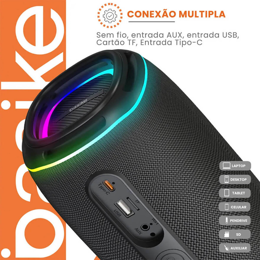 Caixa de Som Basike Ba-RAD017 Som Potente 30W, Luz RGB e Conexão TWS
