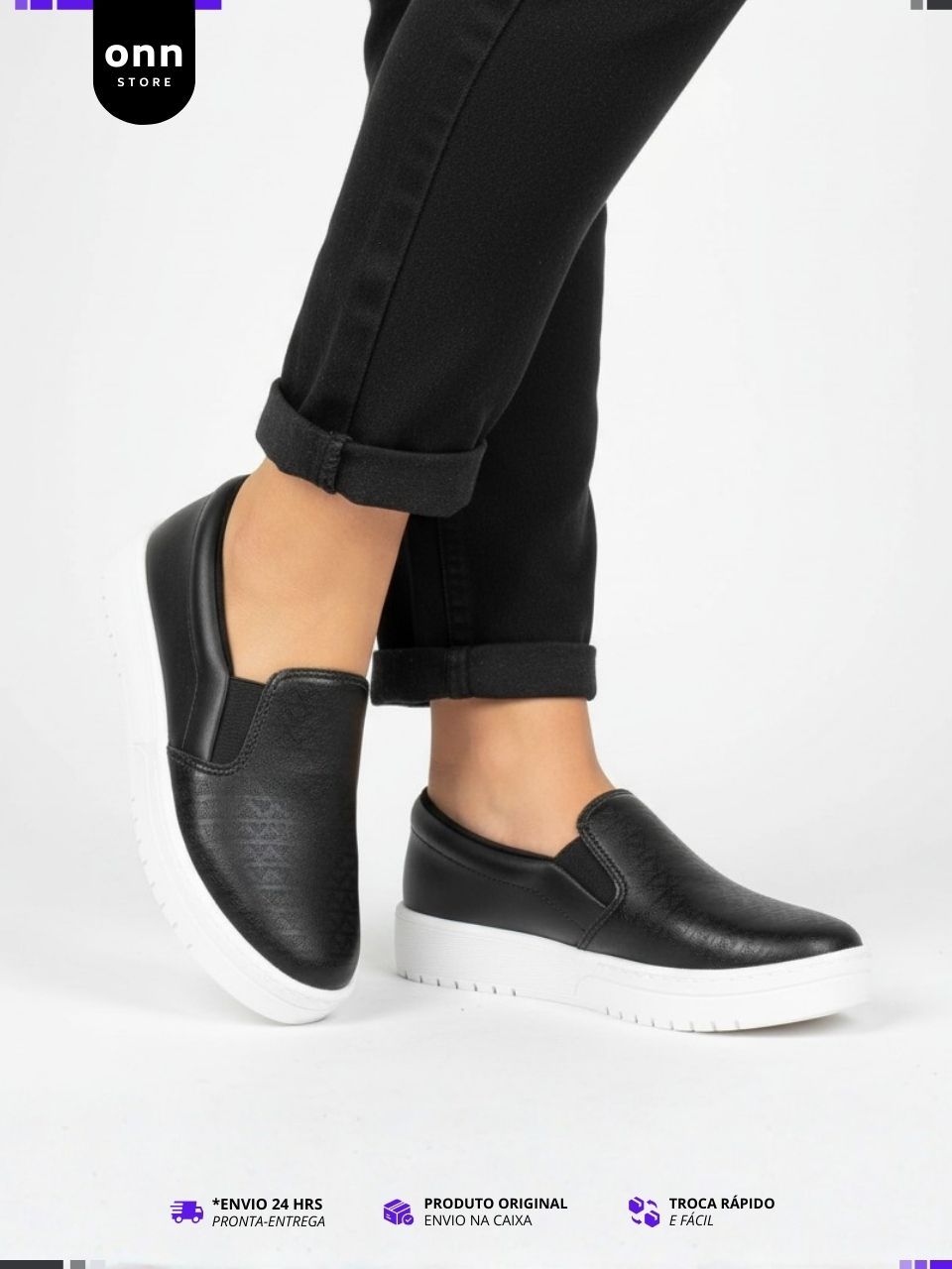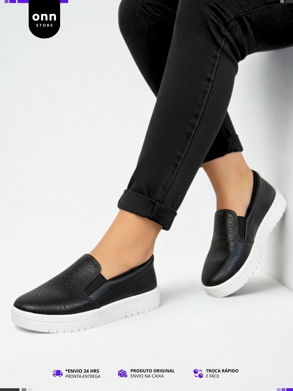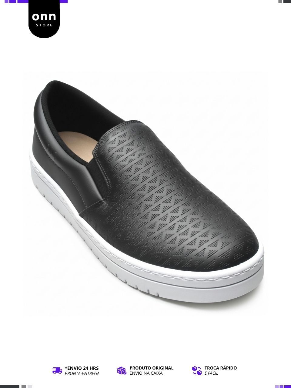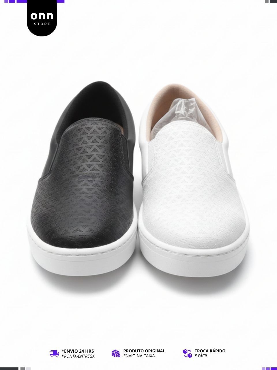 Tênis Feminino Moleca Sem Cadarço Slip On Calce Fácil, Leve - Preto e Branco