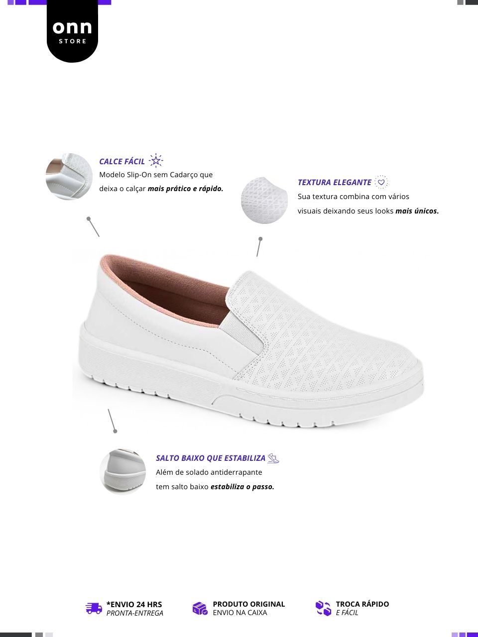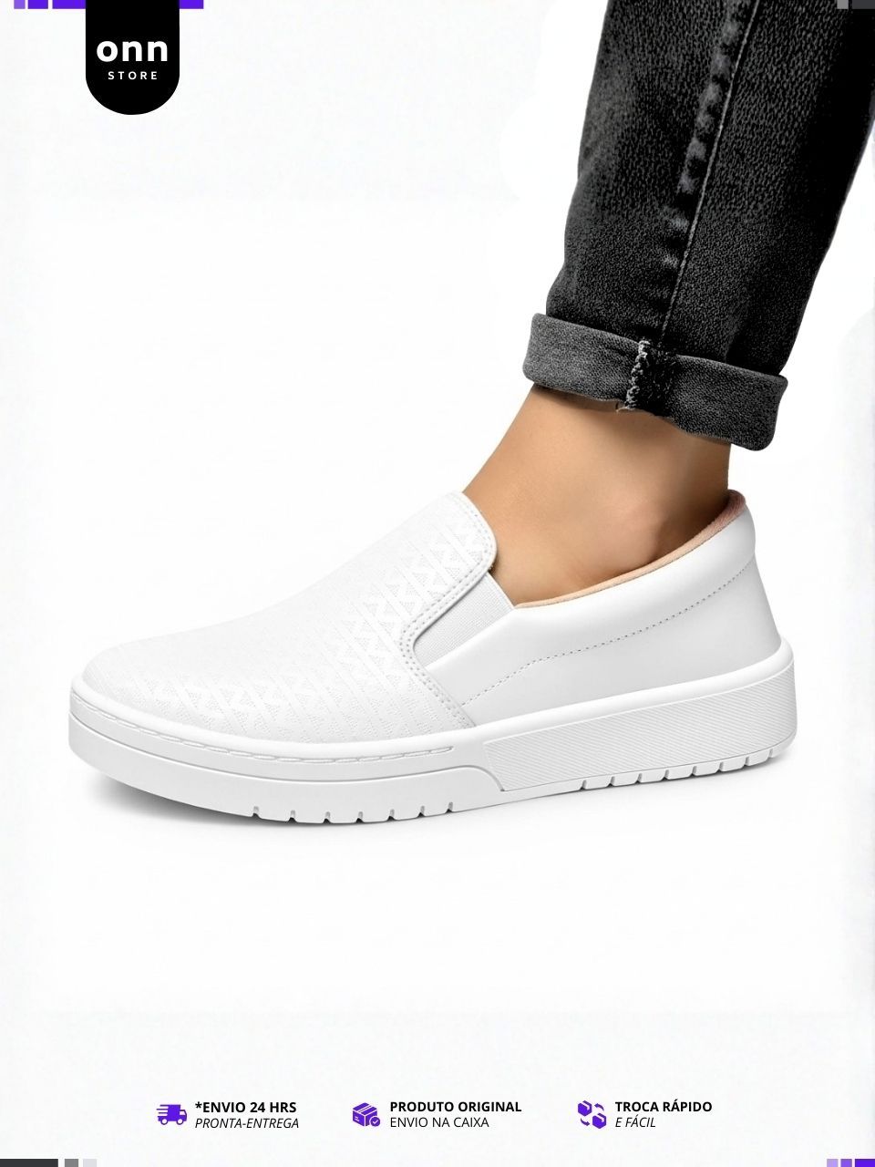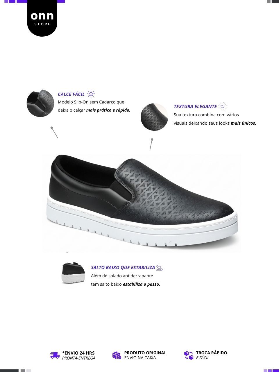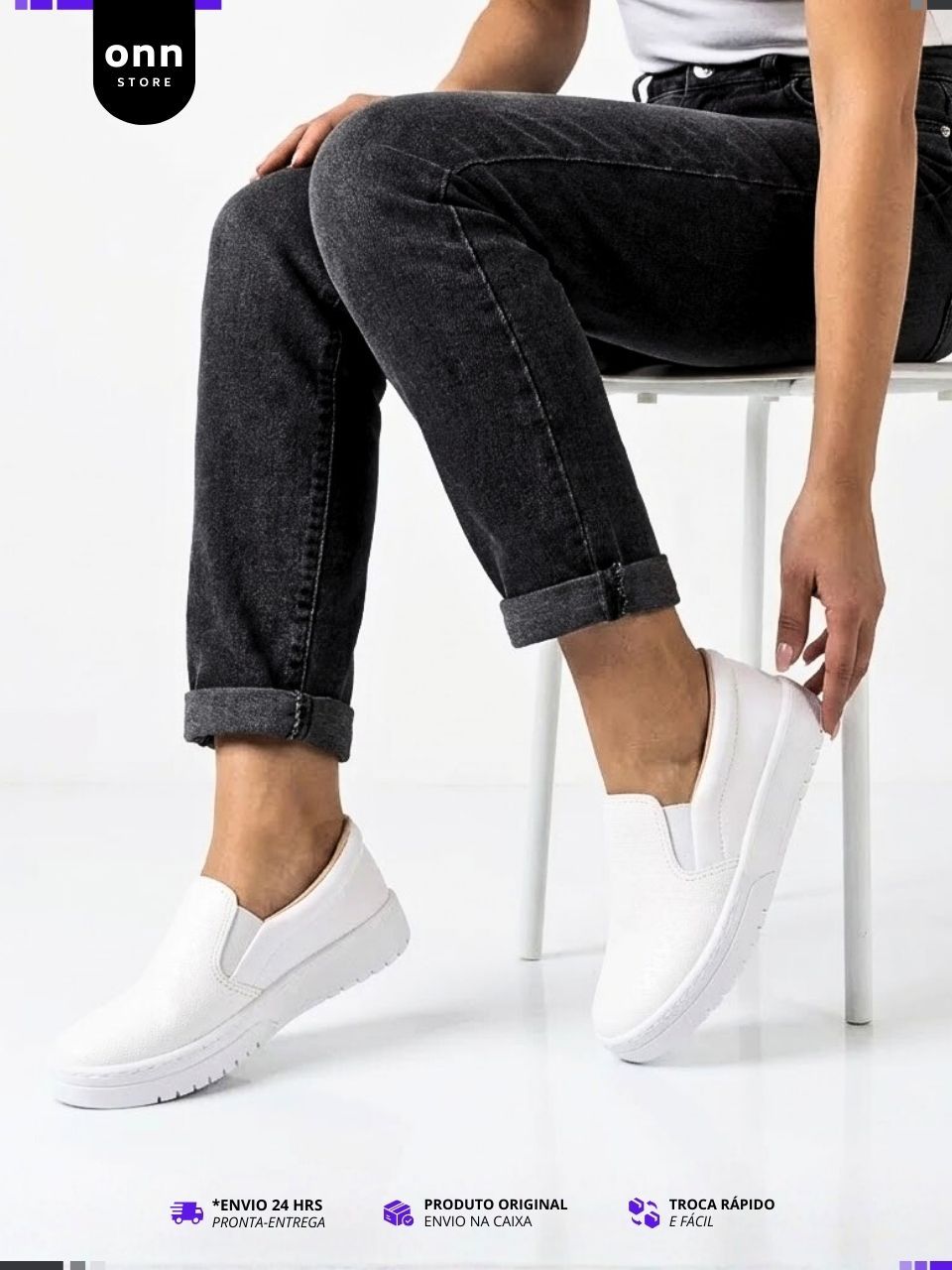 Tênis Feminino Moleca Sem Cadarço Slip On Calce Fácil, Leve - Preto e Branco