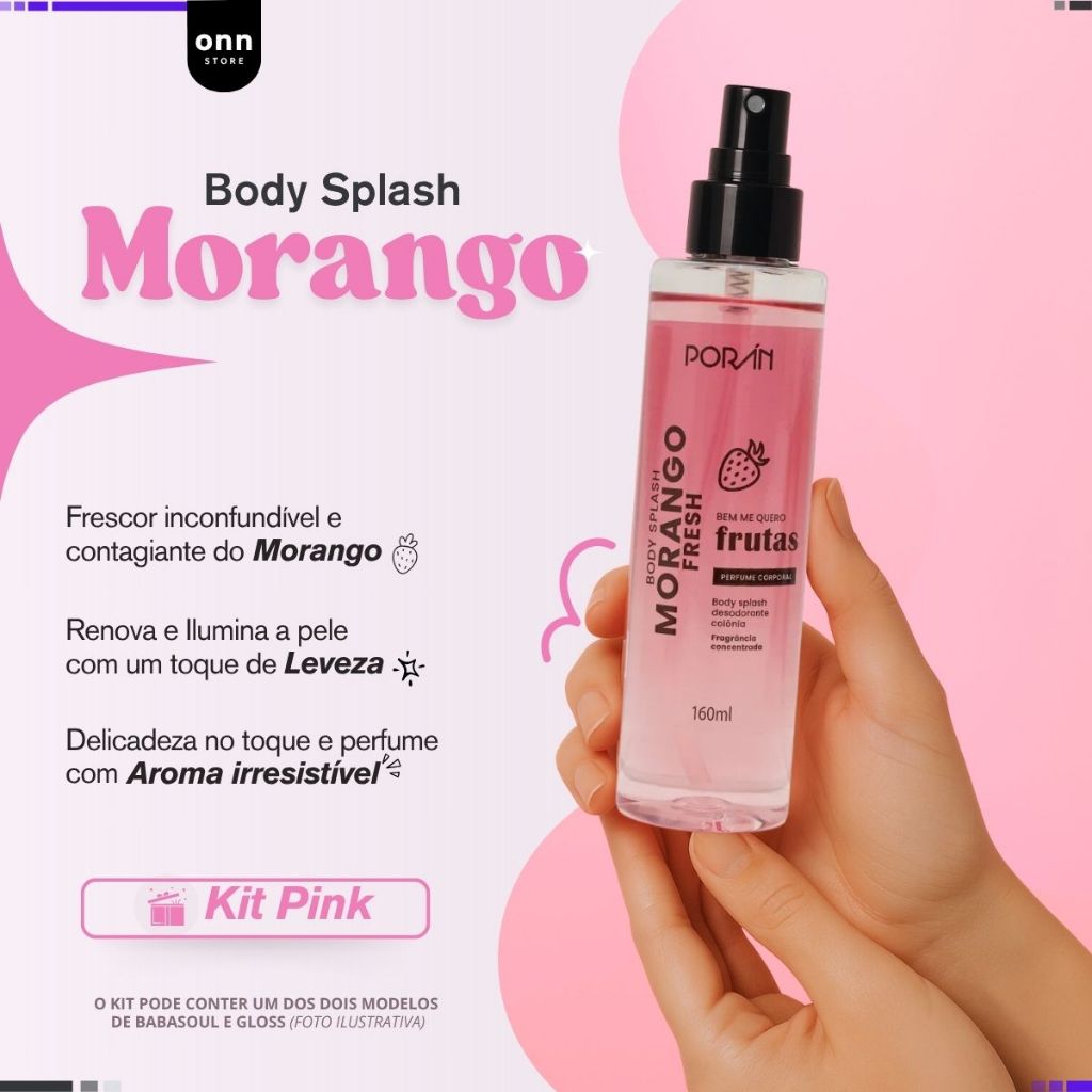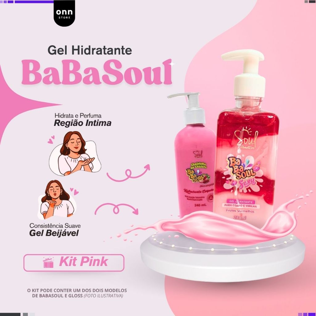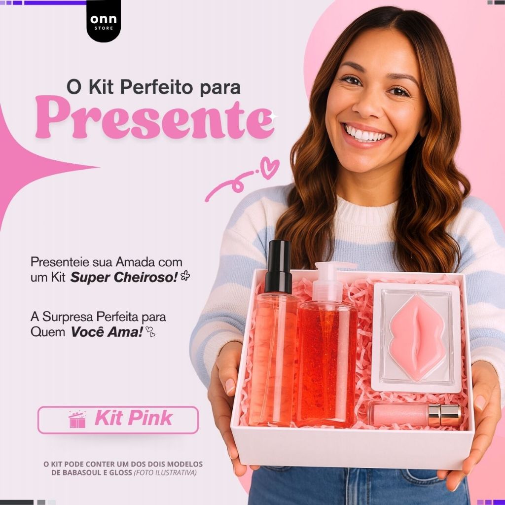 Kit Presente Dia dos Namorados Maquiagem Meikê - Beleza Feminina – Gel Hidratante Babasoul, Body Splash Porán,Gloss