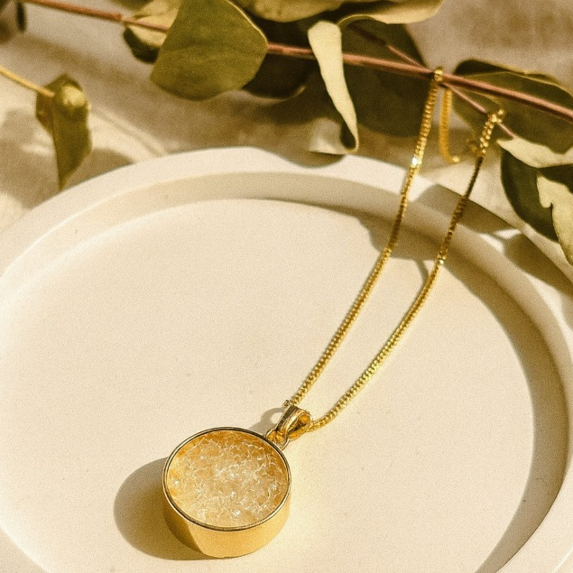 Colar Banhado a Ouro 18K com Pingente Delicado | Semijoia Fina 45cm Sal Grosso Dourado