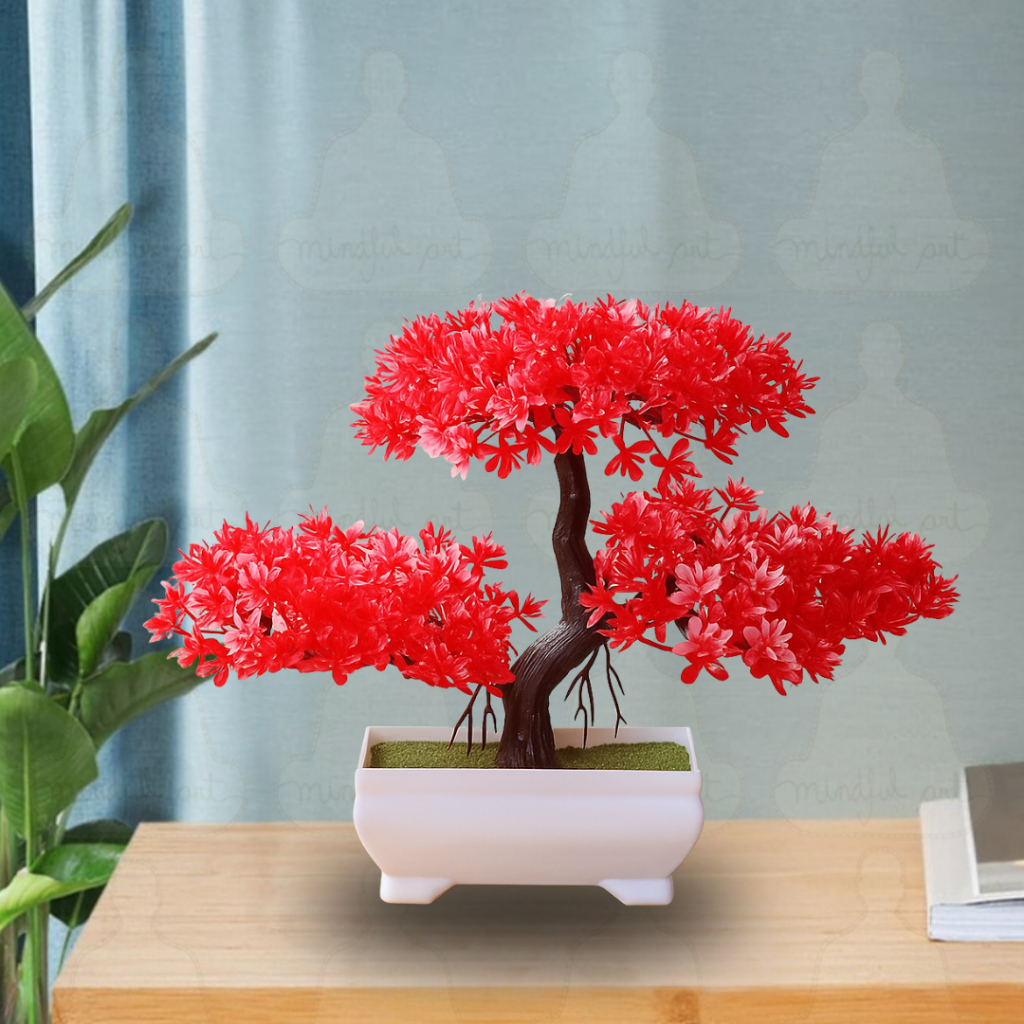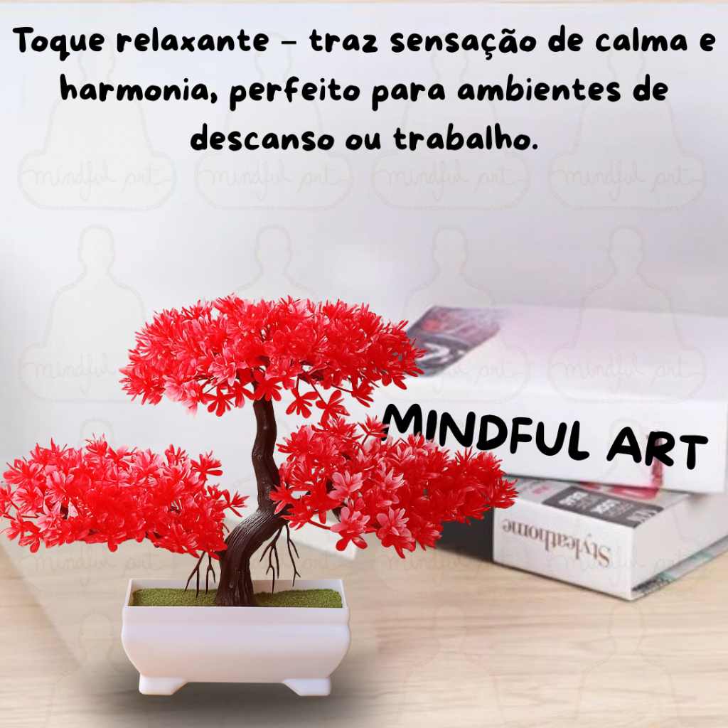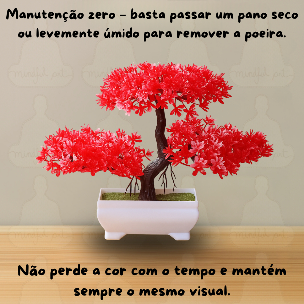 Kit 2 Plantas Bonsais Artificial Nuvem Vermelho em Vaso Branco – Charme Oriental para Sua Decoração