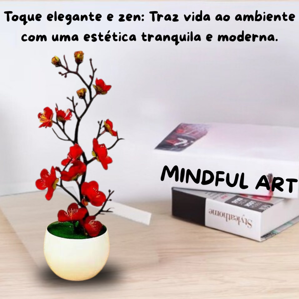 Bonsai Árvore de Flor de Ameixeira Vermelha Artificial – Realismo Beleza eterna sem manutenção.