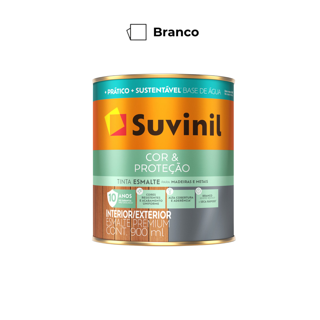 Tinta Esmalte Cor & Proteção Base Água Branco Acetinado 0,9L Suvinil