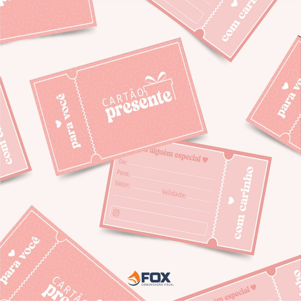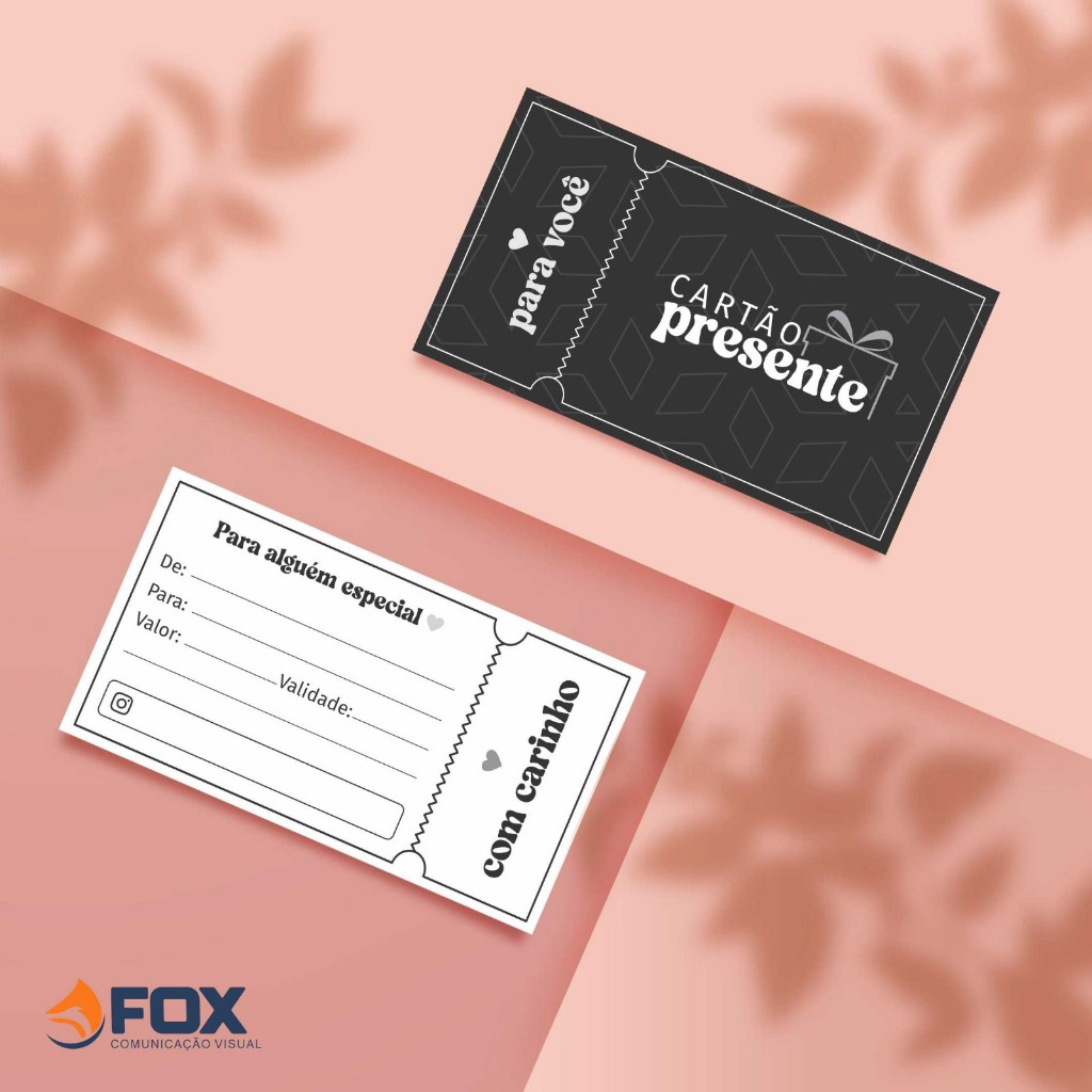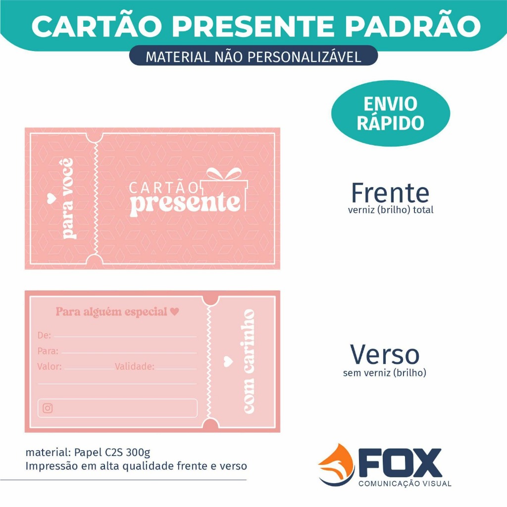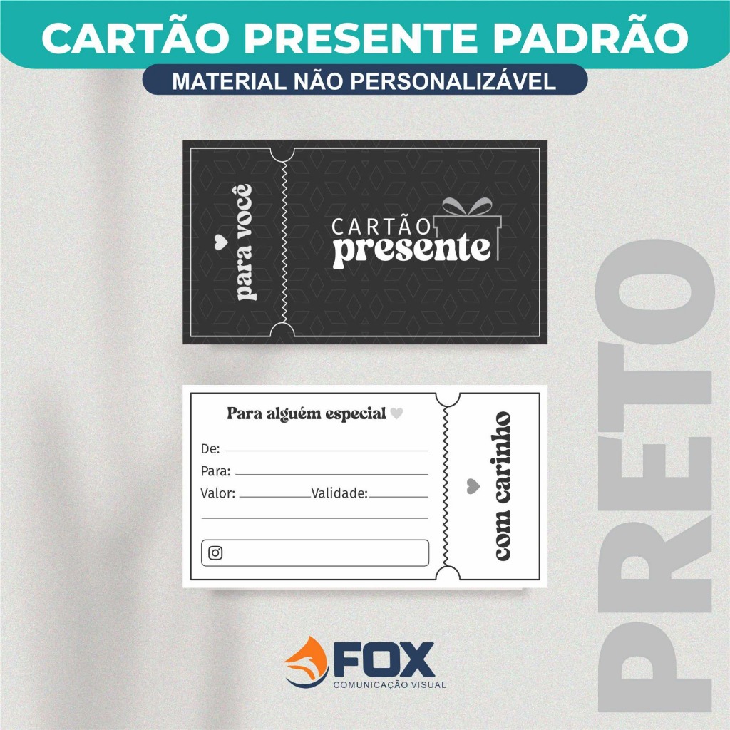 Vale Presente Padrão C2S 300g Frente e Verso | Cores Preto ou Rosê | 50, 100 ou 200 Unidades