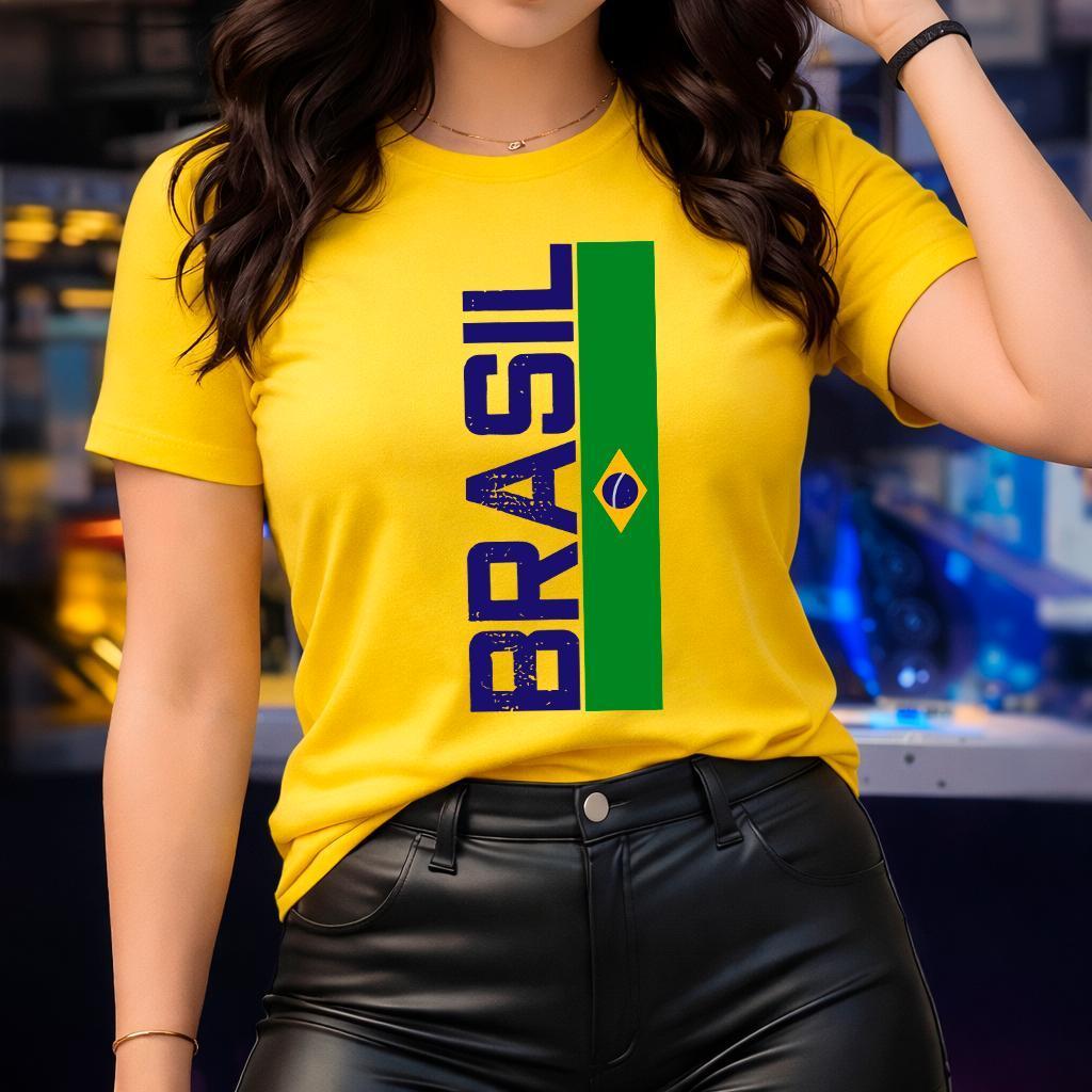 Blusa Feminina Brasil Camiseta T-shirt Copa do Brasil Exa Camisa Casual 100% Algodão