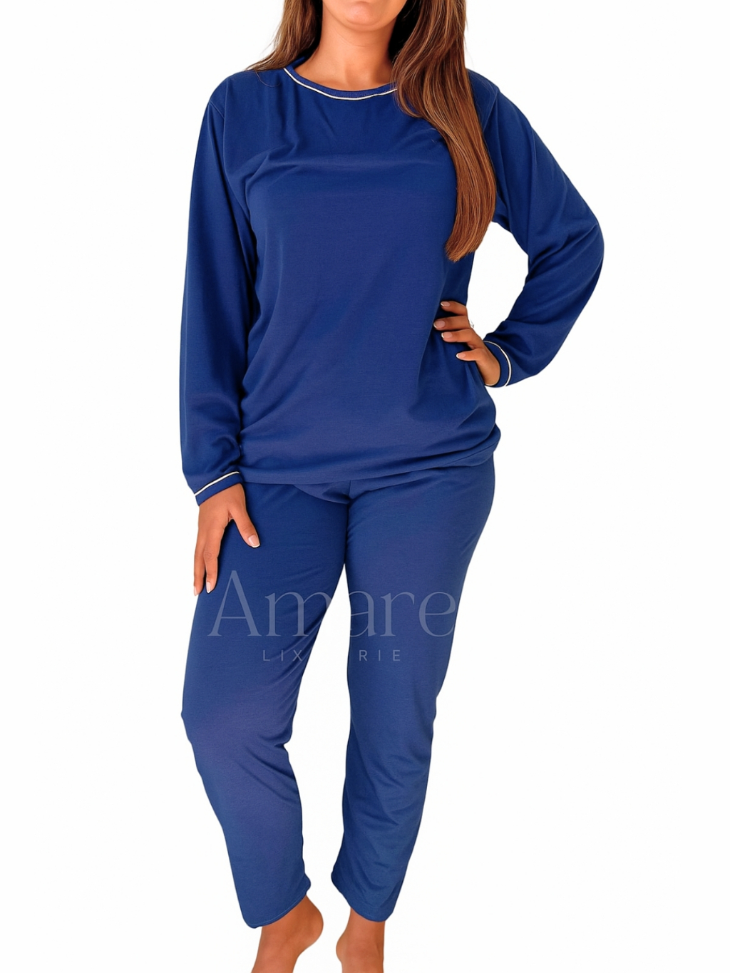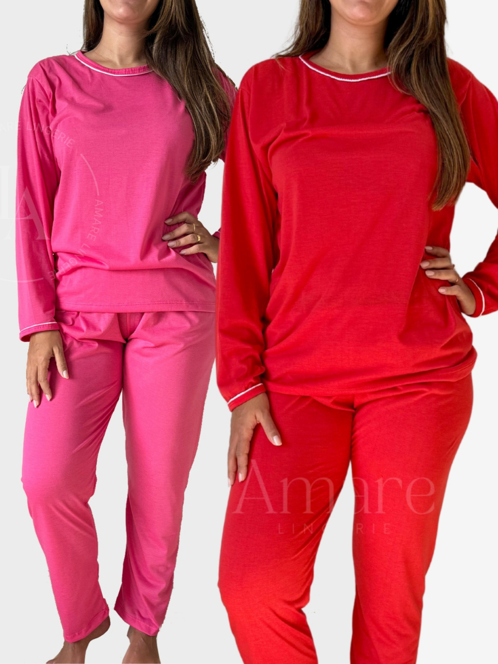Pijama Longo Feminino de Inverno em Malha Premium Cores Lisas