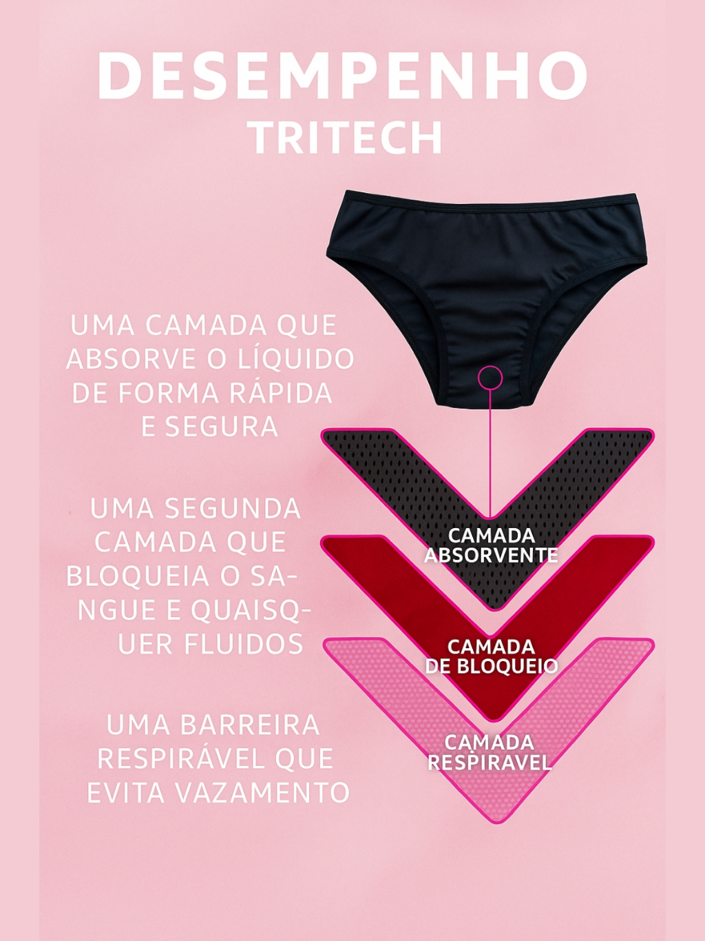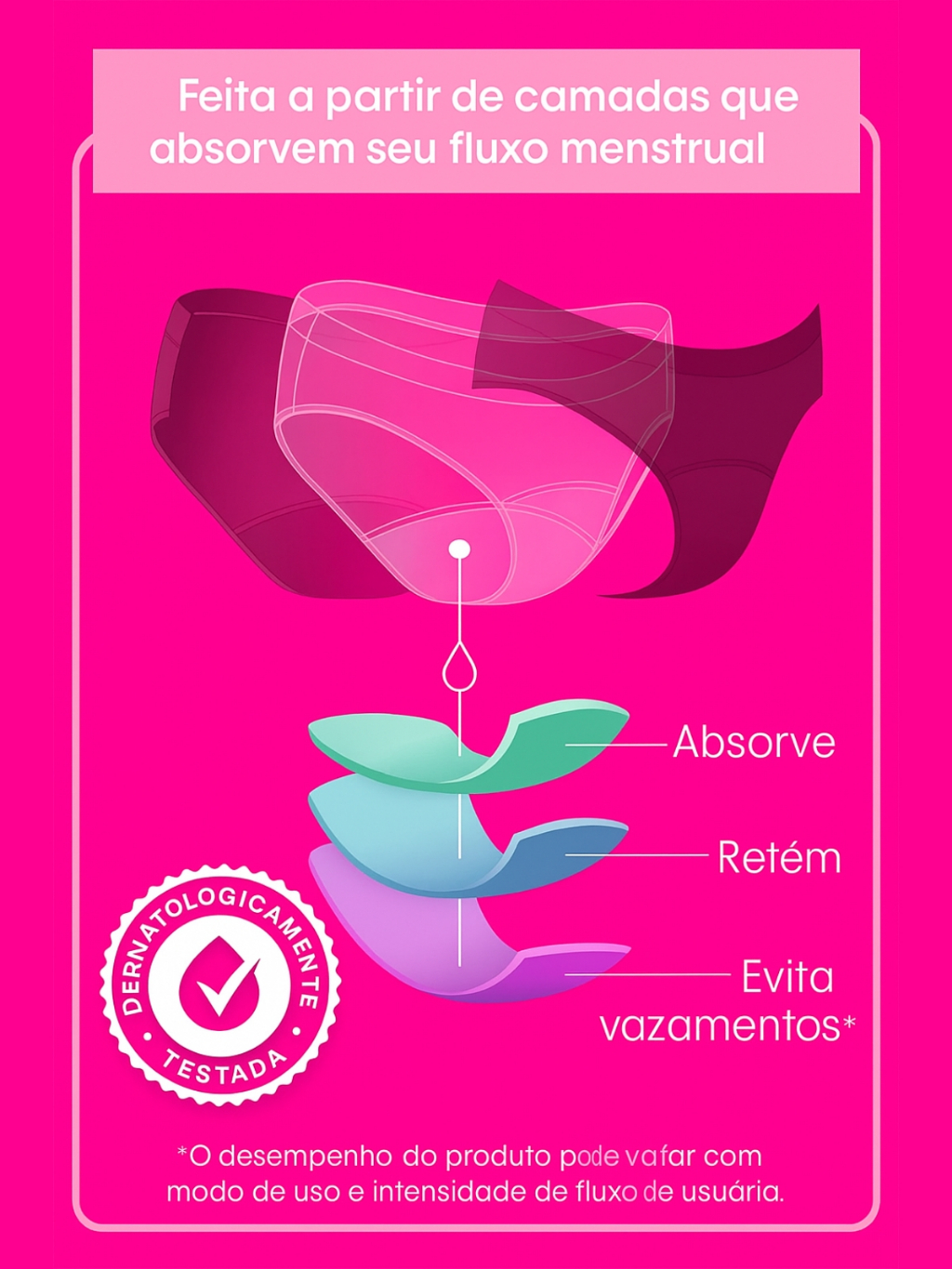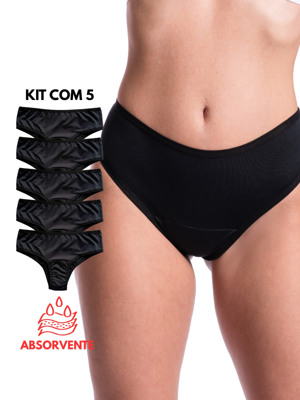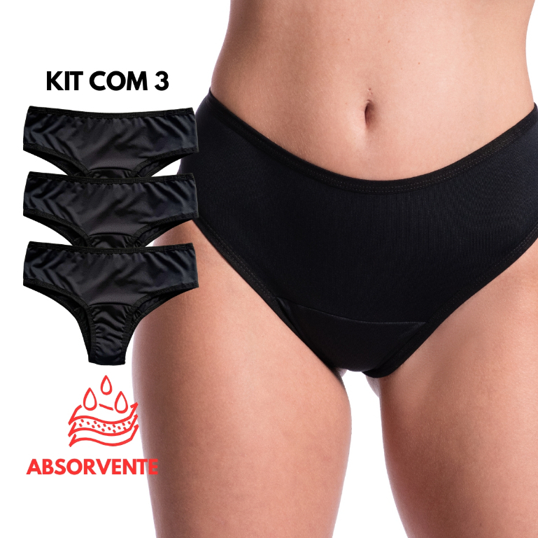 Kit 5 Calcinhas Absorvente Mestrual Incontinência Urinária Antibacteriana Reutilizável