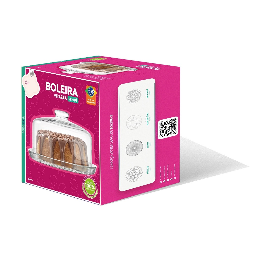 Conjunto Boleira Porta Bolo 28cm Com Prato e Tampa De Vidro Vitazza