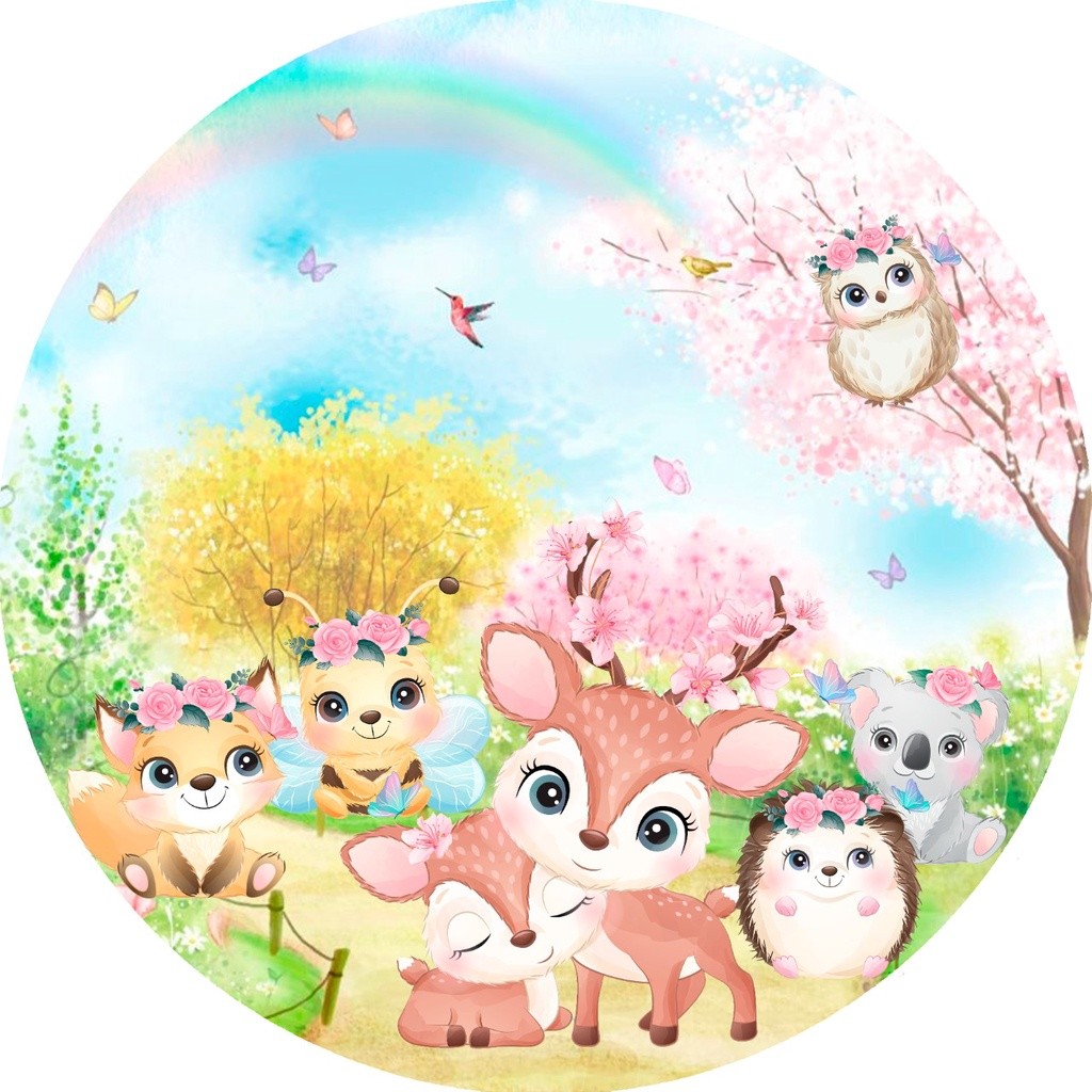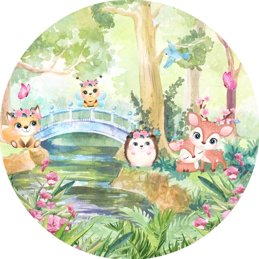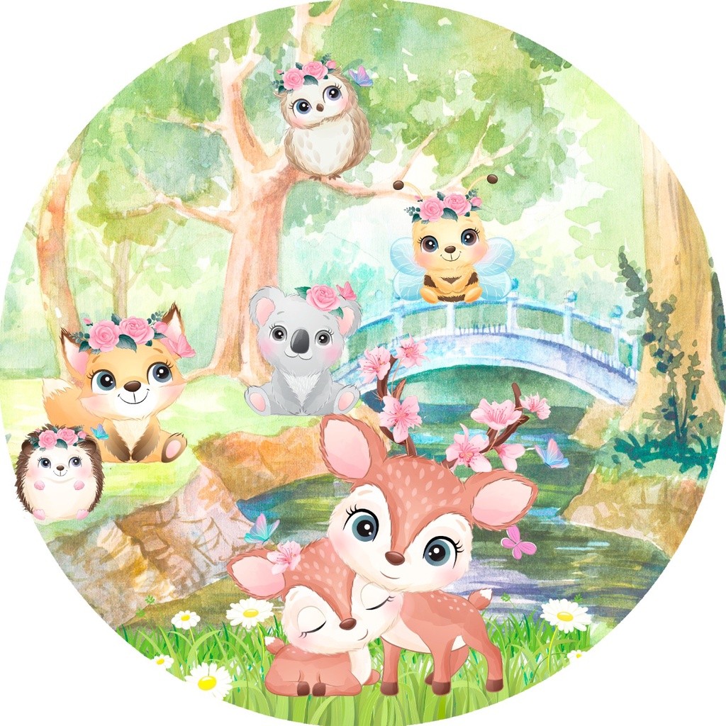 PAINEL REDONDO TECIDO SUBLIMADO DECOR BOSQUE ENCANTADO 1,50m