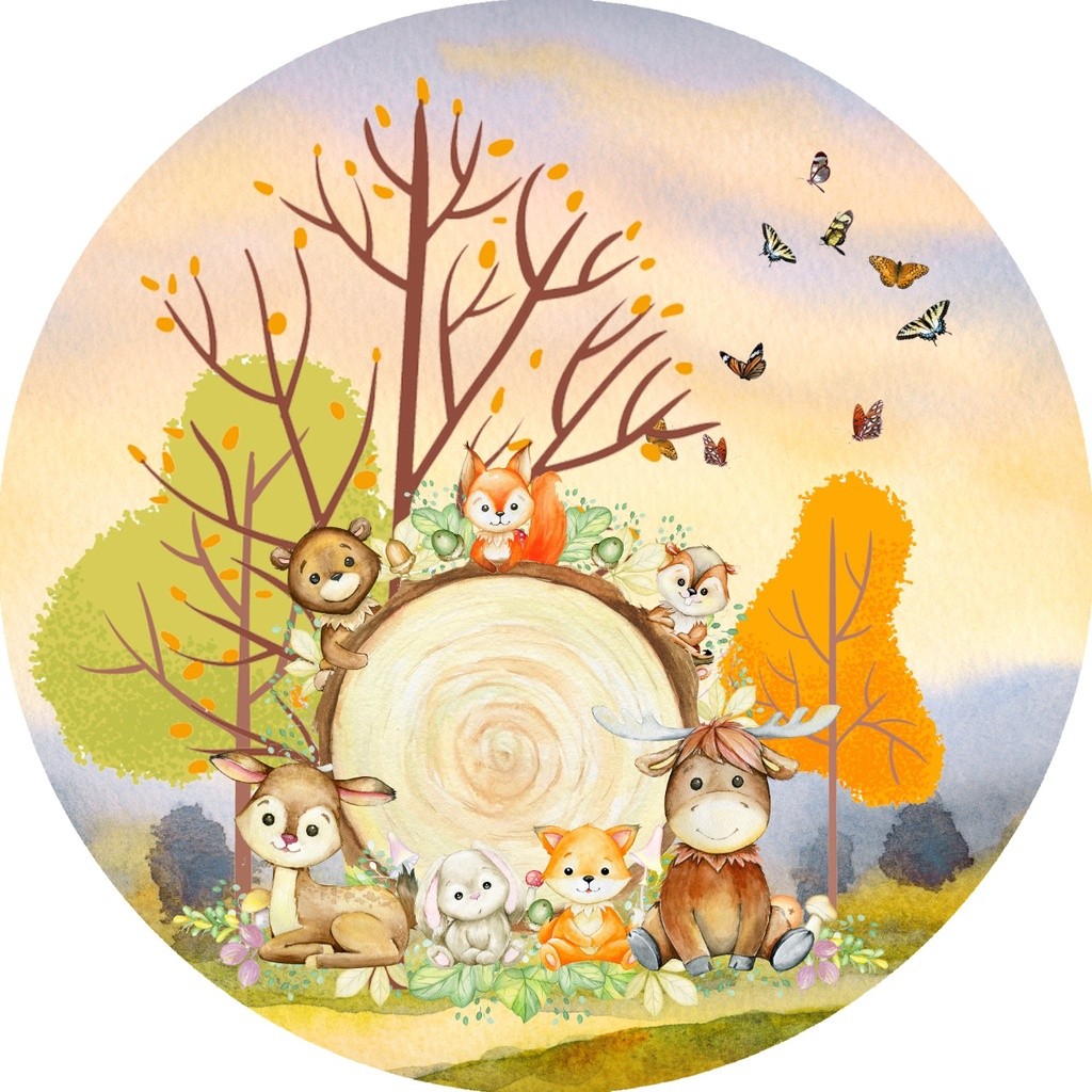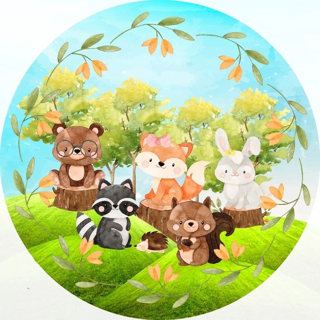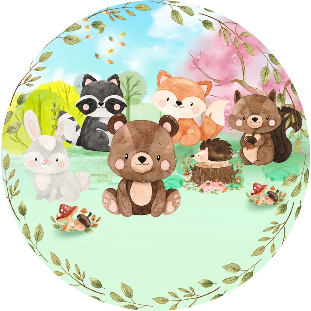 PAINEL REDONDO TECIDO SUBLIMADO DECOR BOSQUE ENCANTADO 1,50m