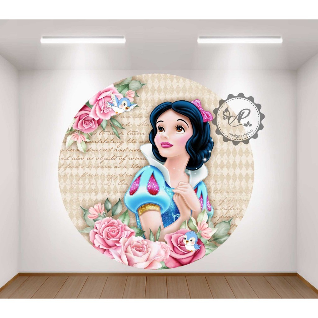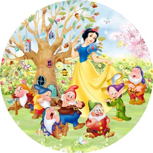 Painel festa redondo tecido sublimado decor BRANCA DE NEVE