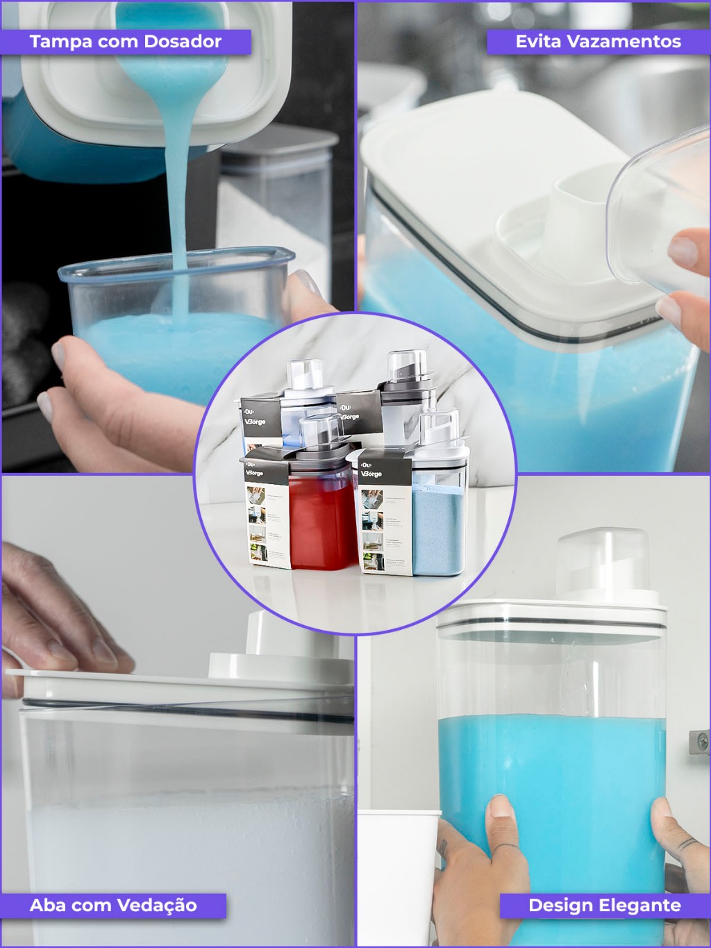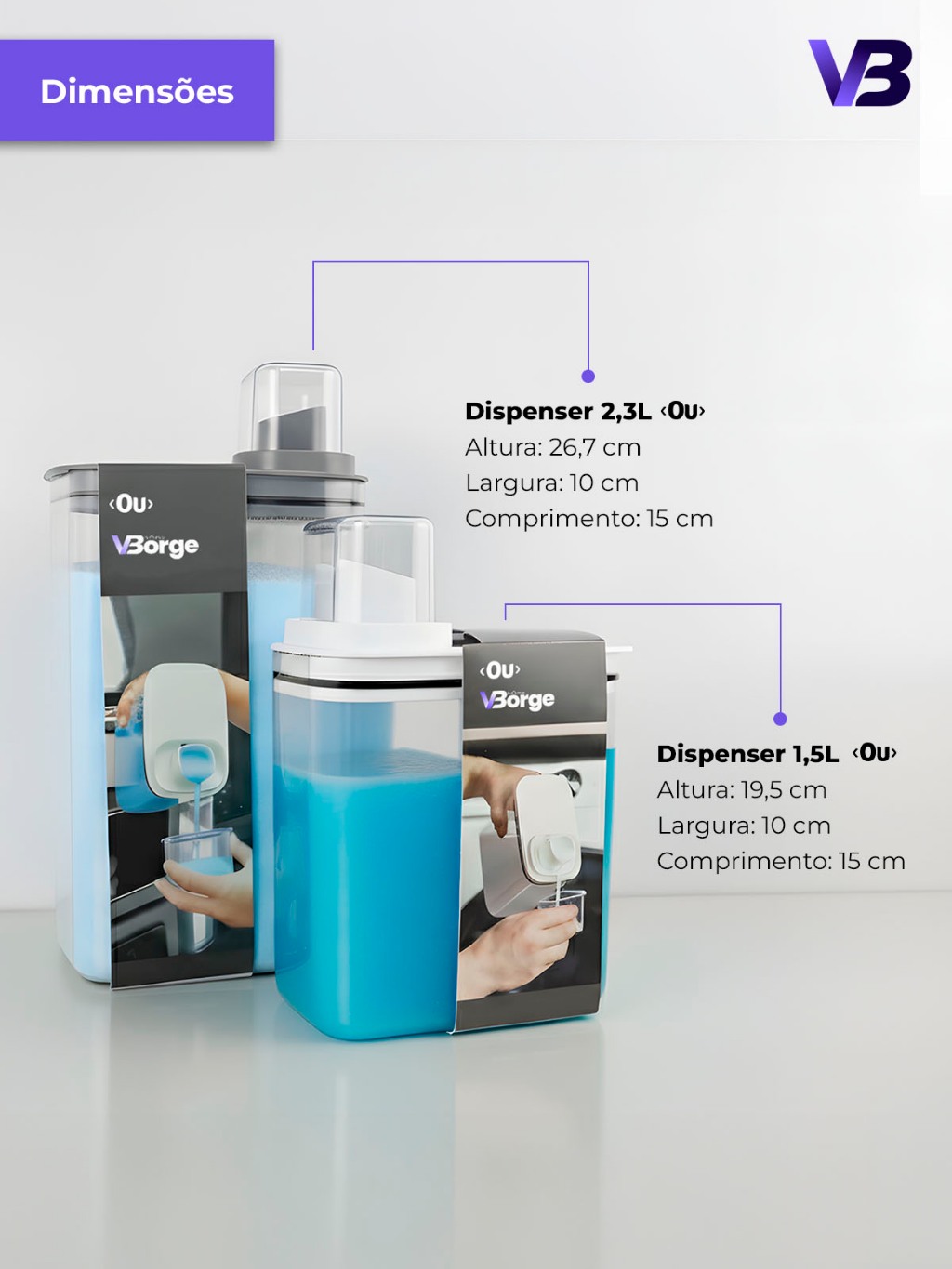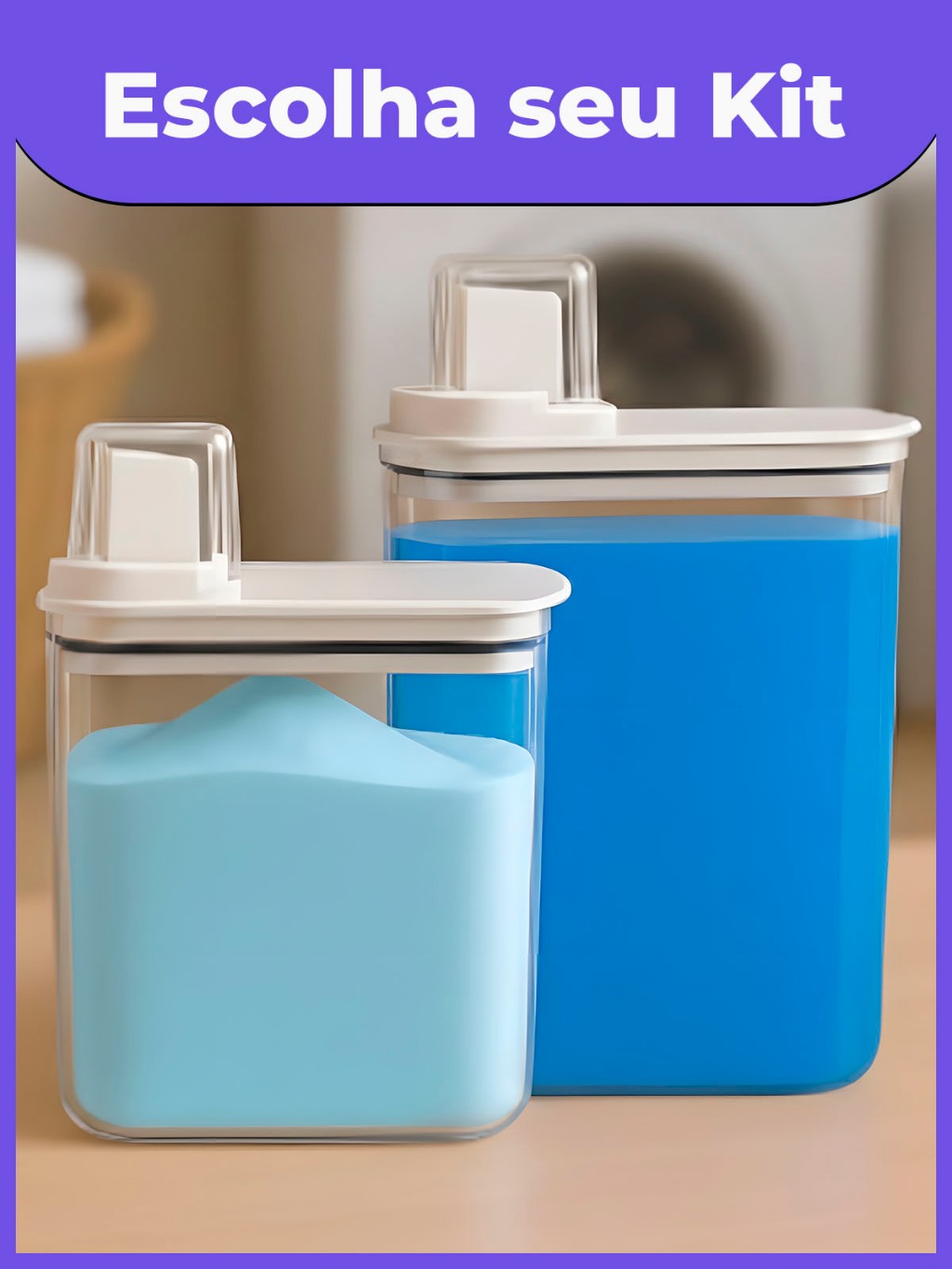 Kit Dispenser Organizador Lavanderia 2,3 litros 1,5 Litros Acrílico (AMACIANTE, SABÃO EM PÓ)