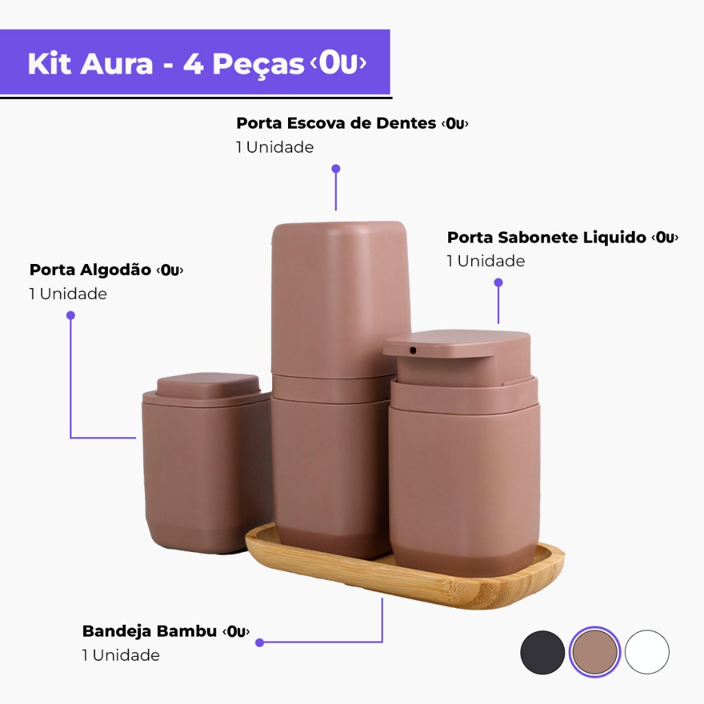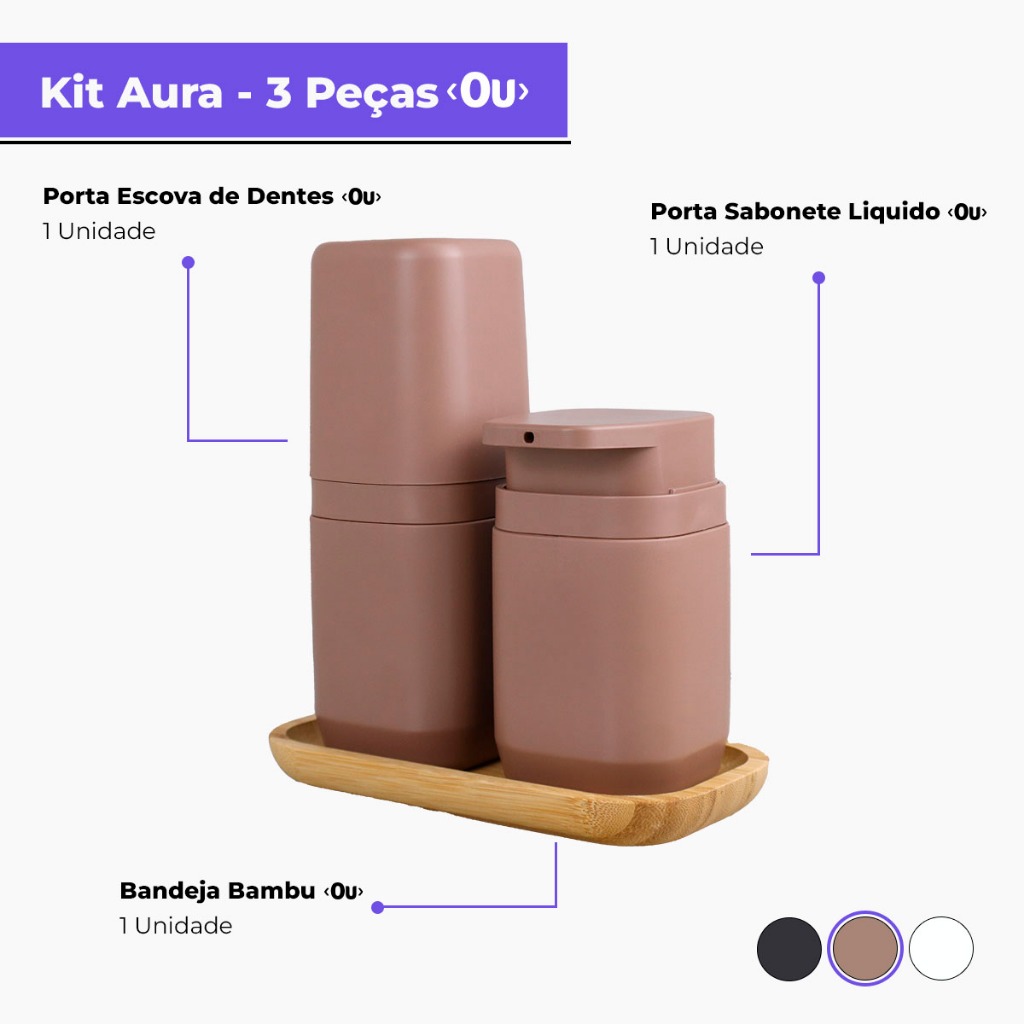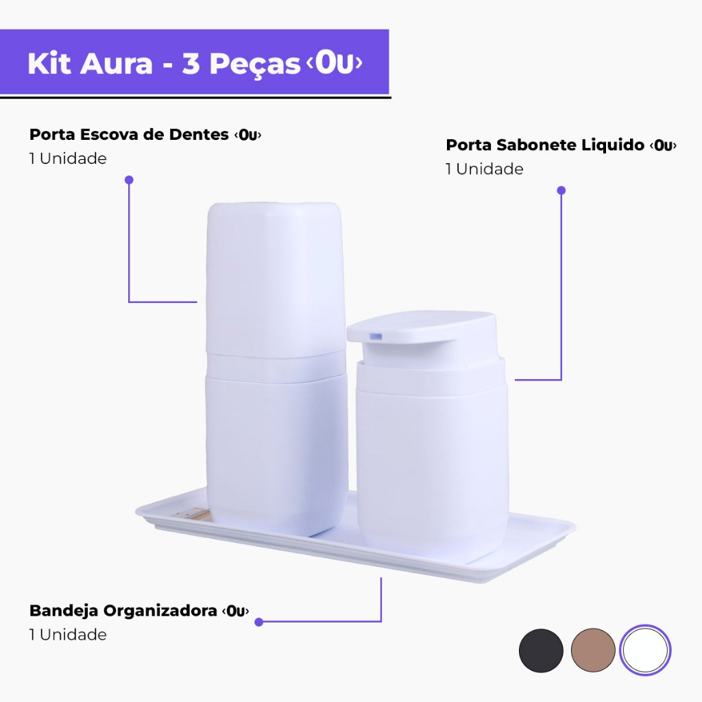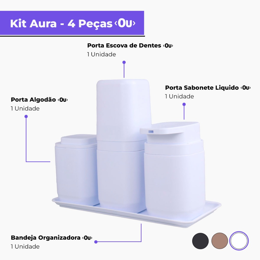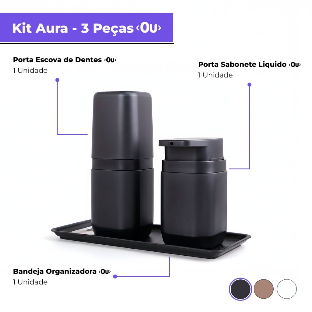 Kit Banheiro Aura Luxo - Porta Sabonete Líquido Porta Escovas Porta Algodão Bandeja e Difusor - Ou