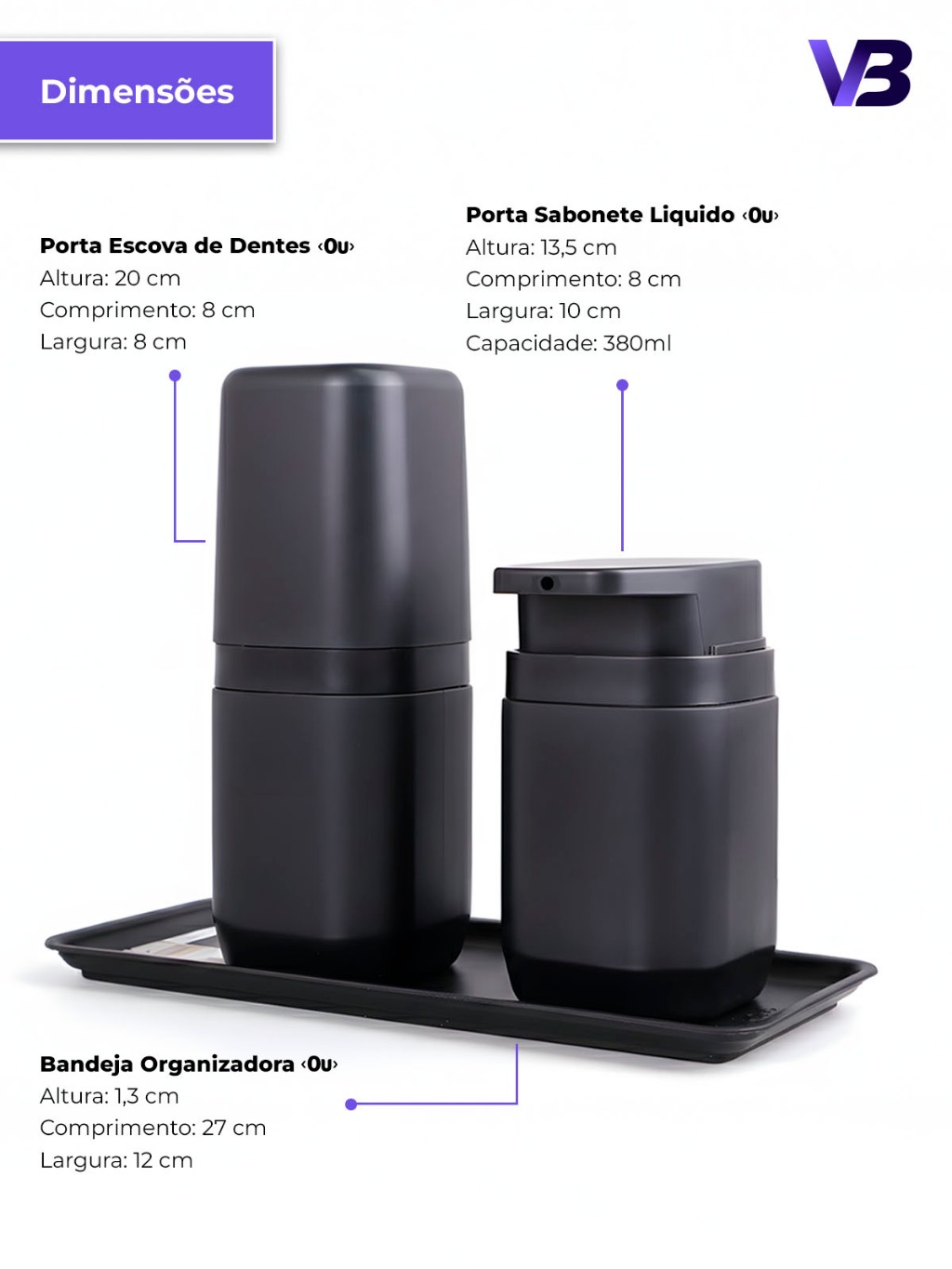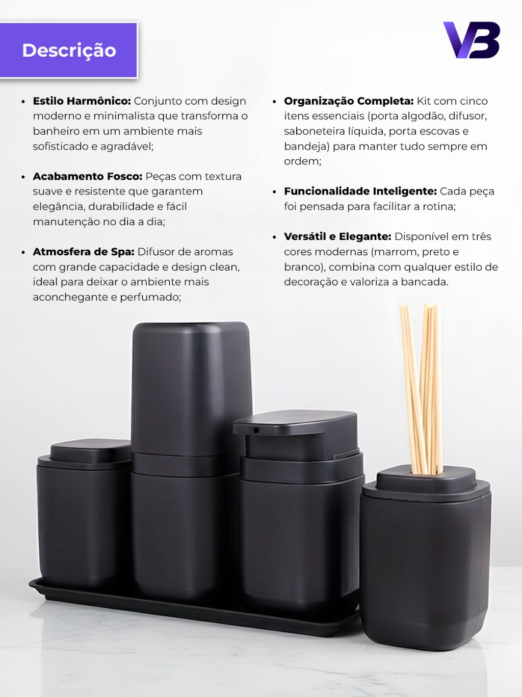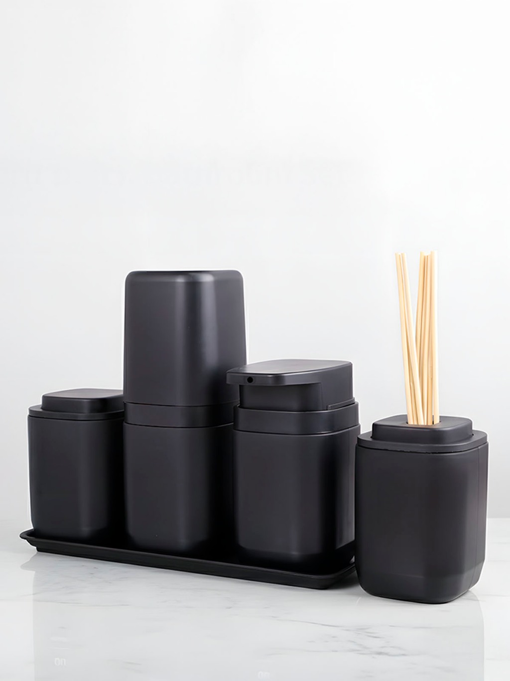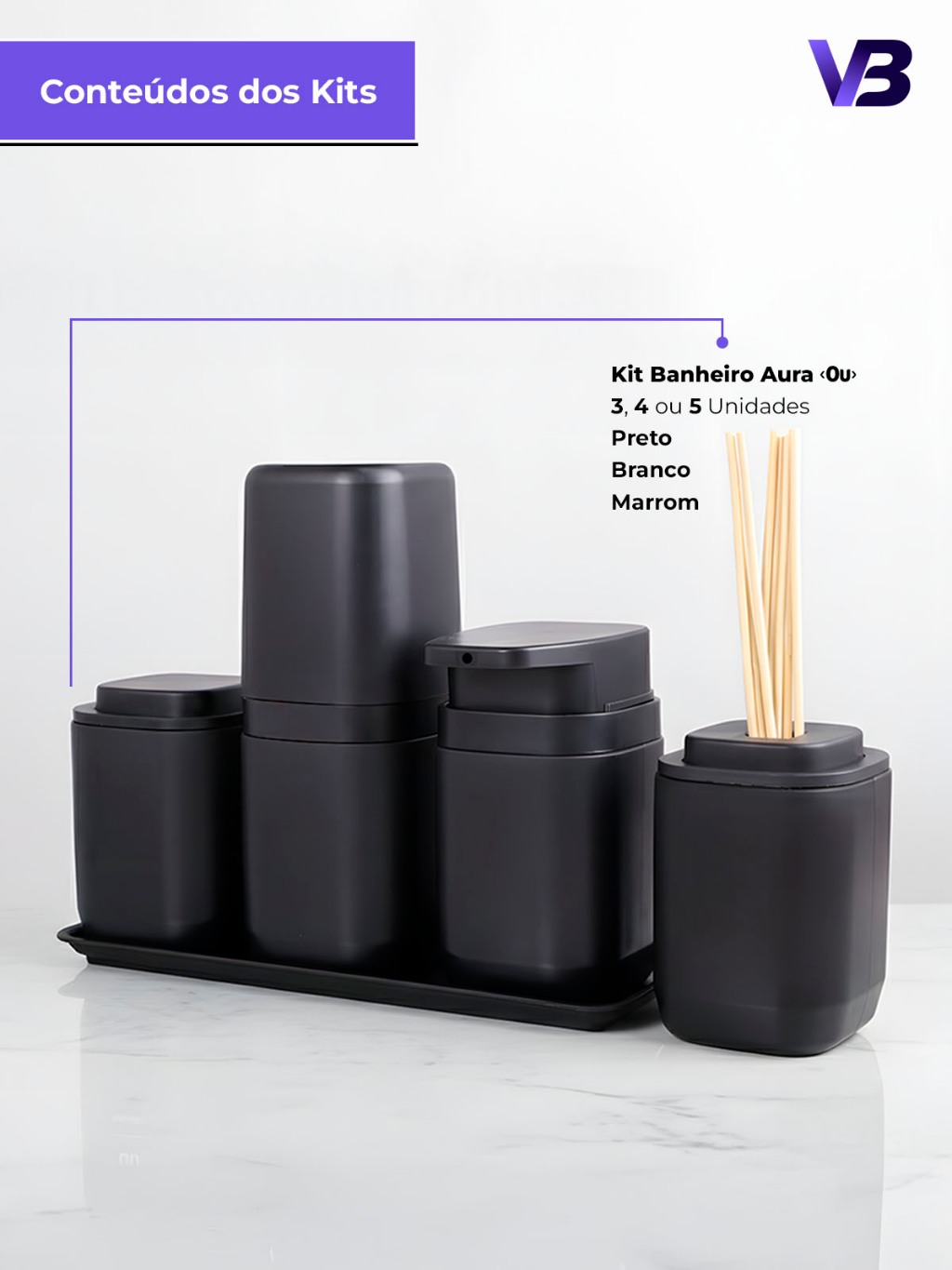 Kit Banheiro Aura Luxo - Porta Sabonete Líquido Porta Escovas Porta Algodão Bandeja e Difusor - Ou