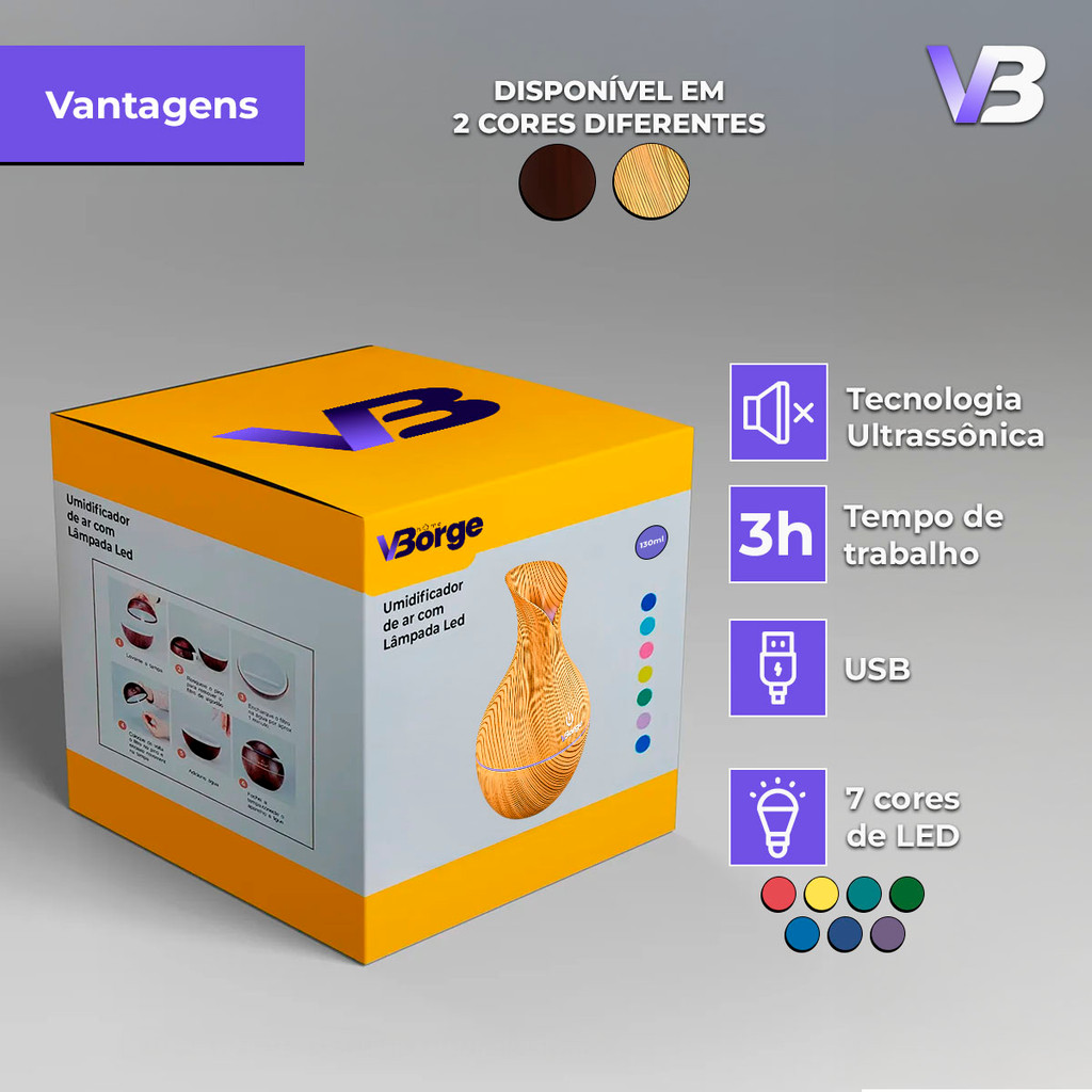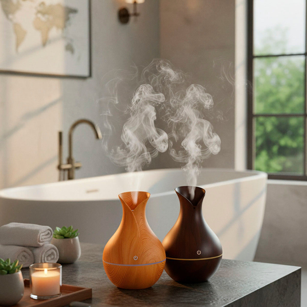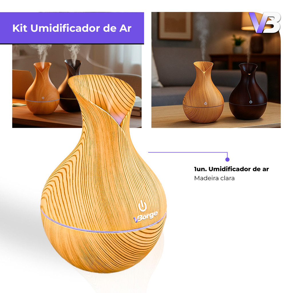 Umidificador De Ar + 5 Essências Hidrossolúvel | Difusor Modelo Vaso 200ml | Essências 10ml