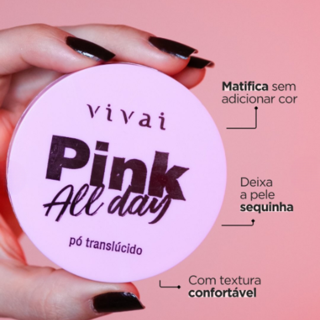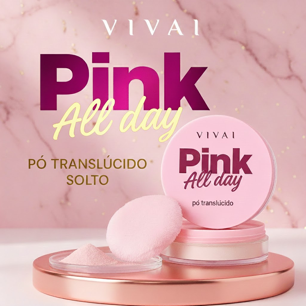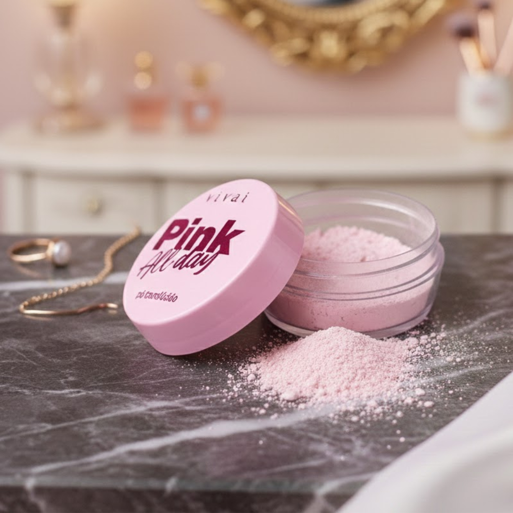 Pó Solto Vivai Rosa Pink All Day – Translúcido, Efeito Matte, Pele Aveludada e Sequinha, Acabamento Profissional