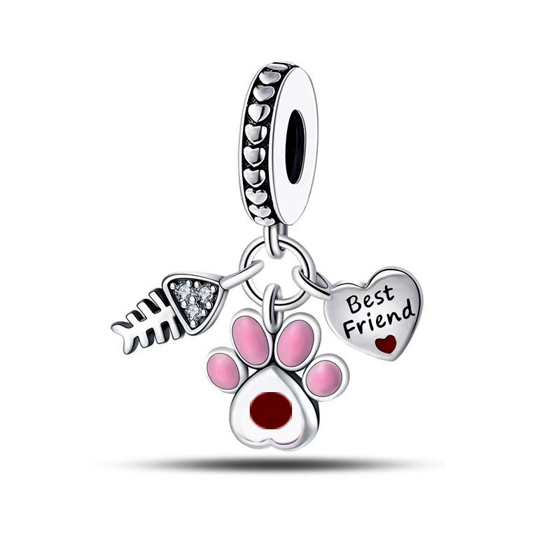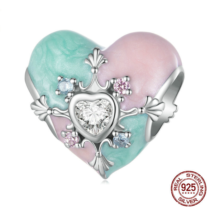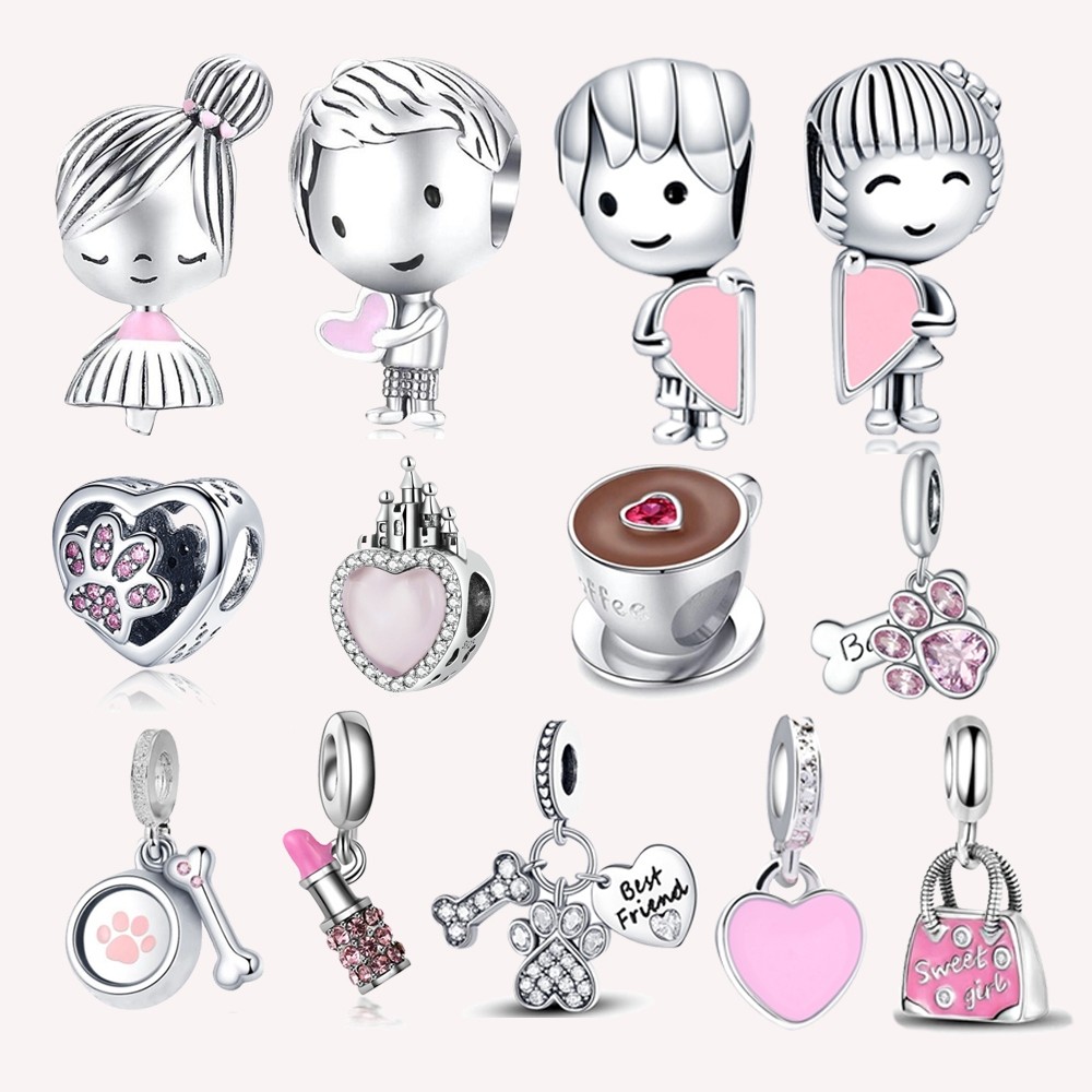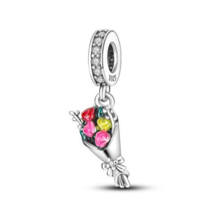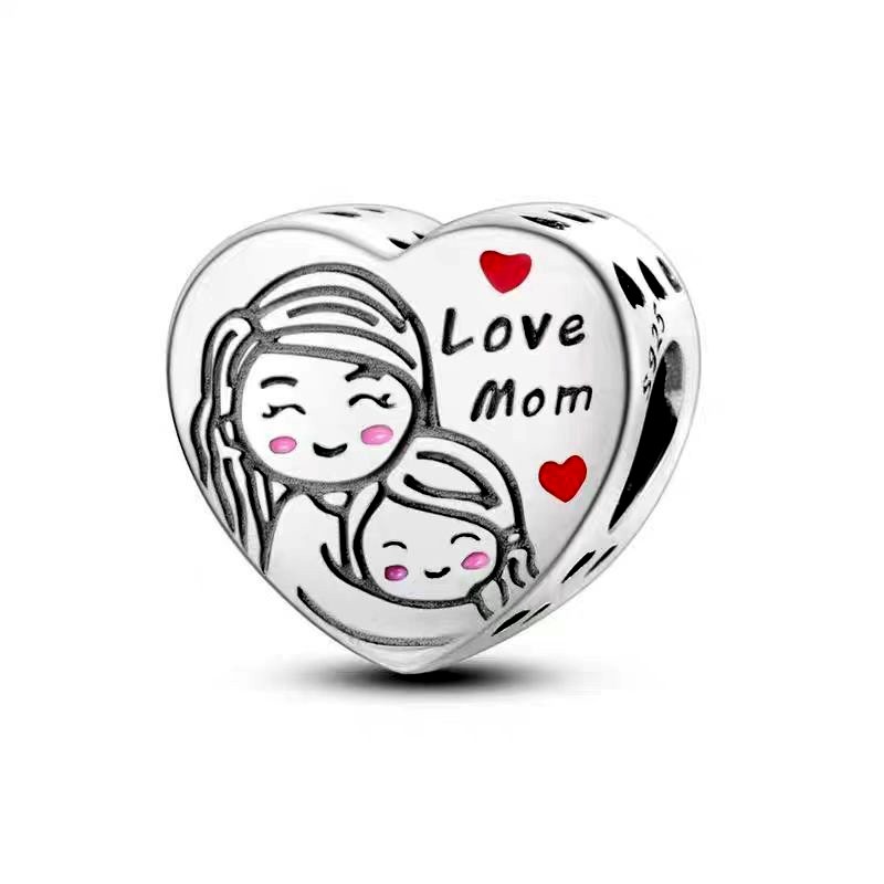 Berloque Pingente De Charme Amor Rosa Prata 925 Diamante Encantos Família Mãe Irmã