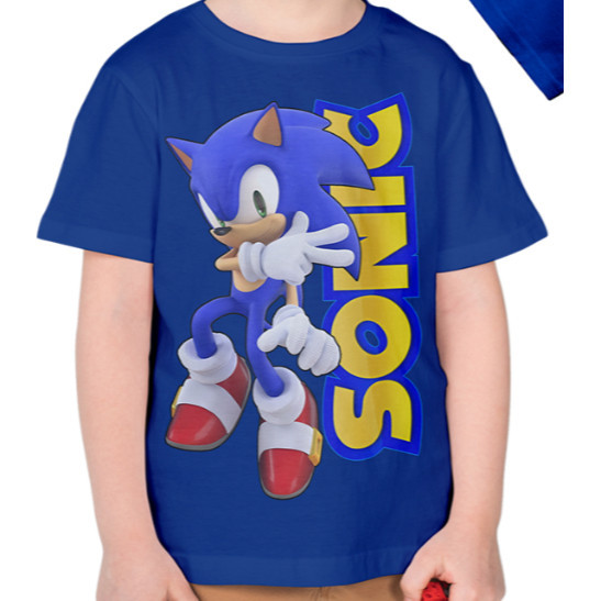 Camiseta Infantil Sonic Paz Azul 100% Algodão