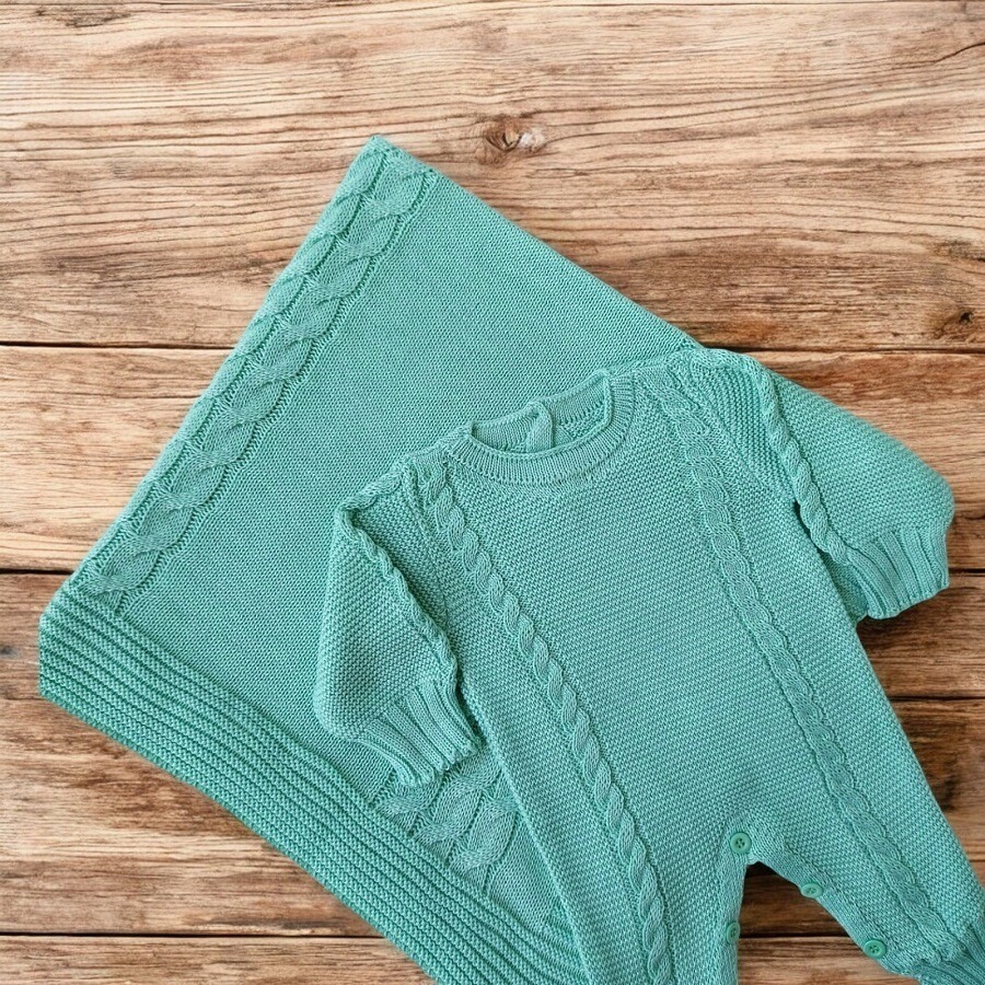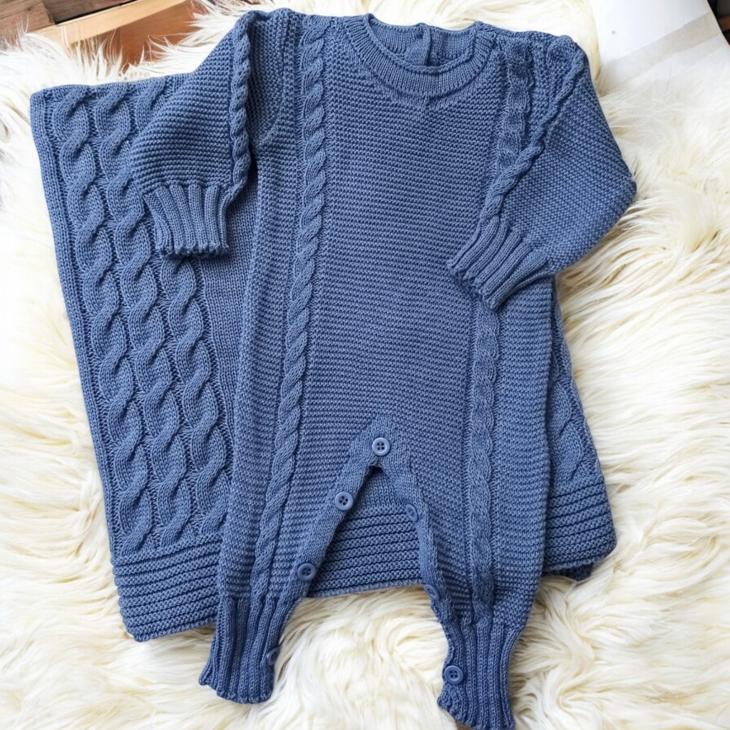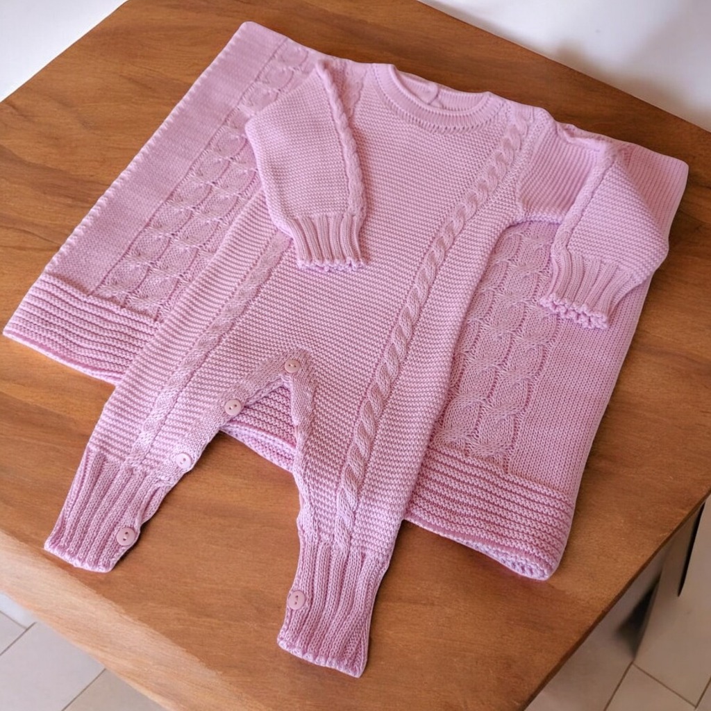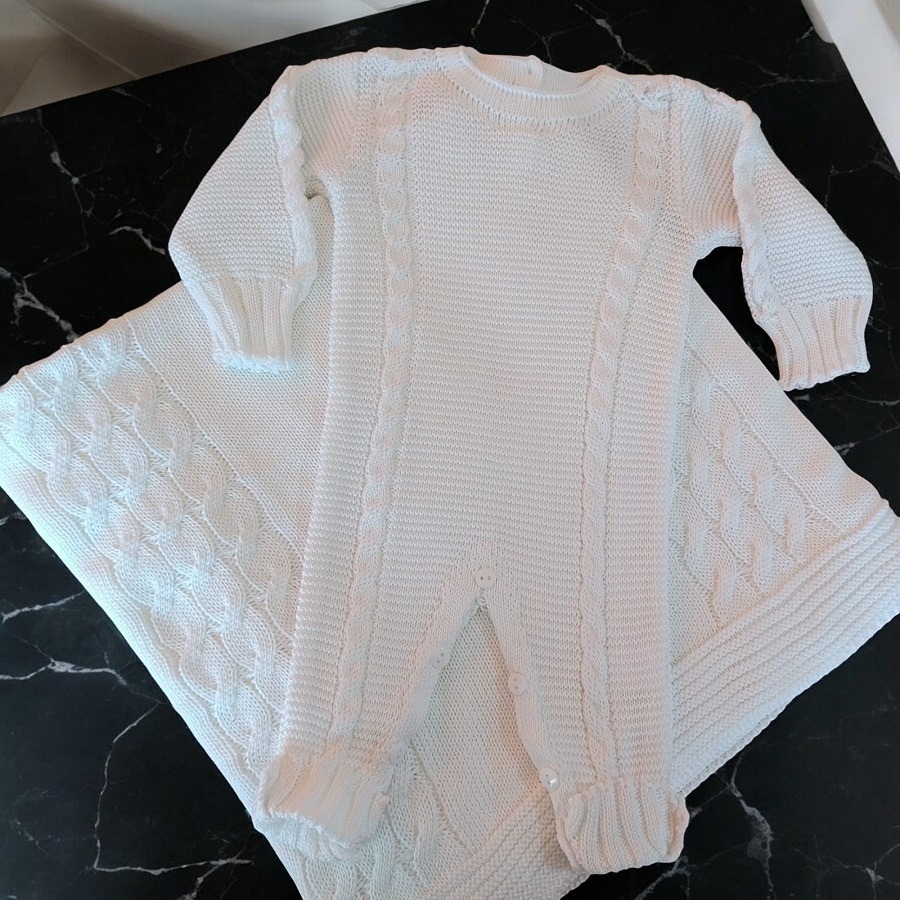 SAIDA MATERNIDADE 2 PÇS DE TRICOT MACACÃO E MANTA LUXO MENINO E MENINA