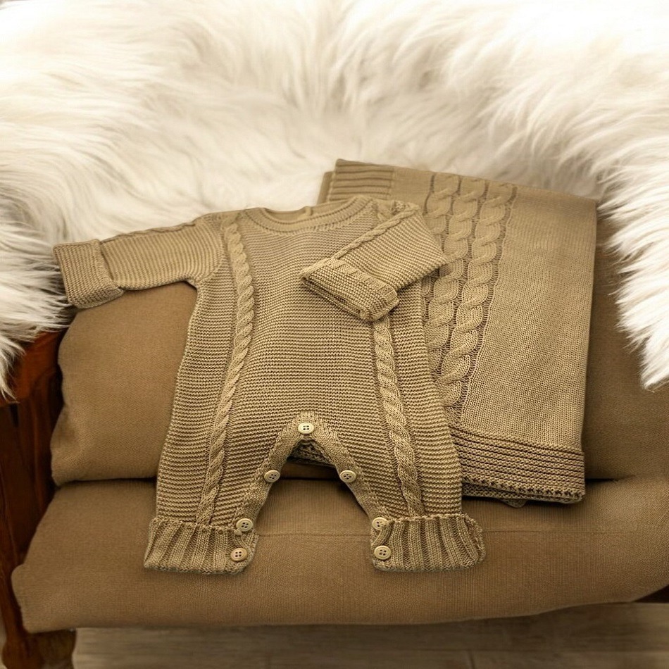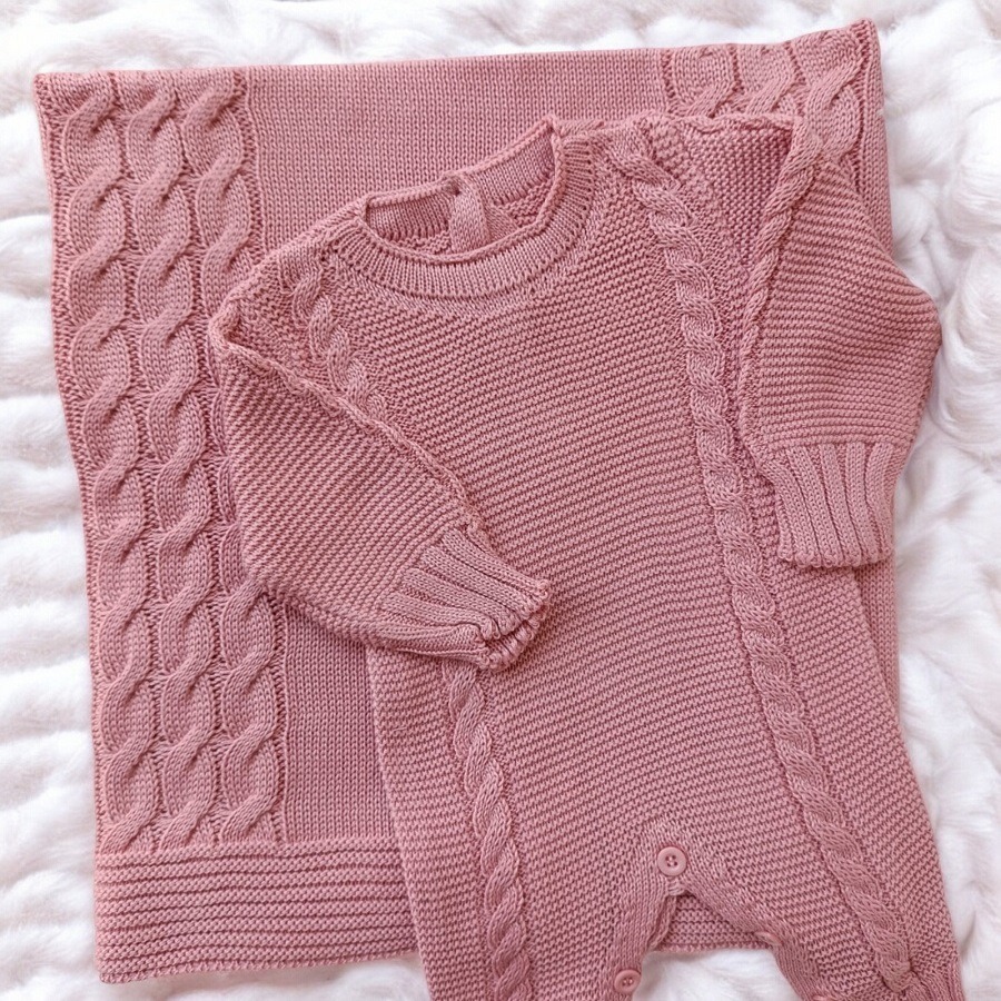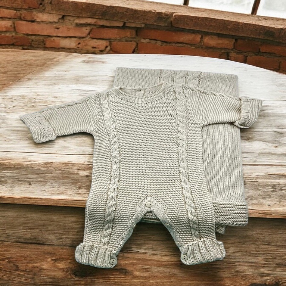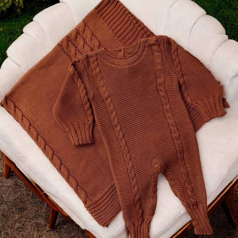 SAIDA MATERNIDADE 2 PÇS DE TRICOT MACACÃO E MANTA LUXO MENINO E MENINA