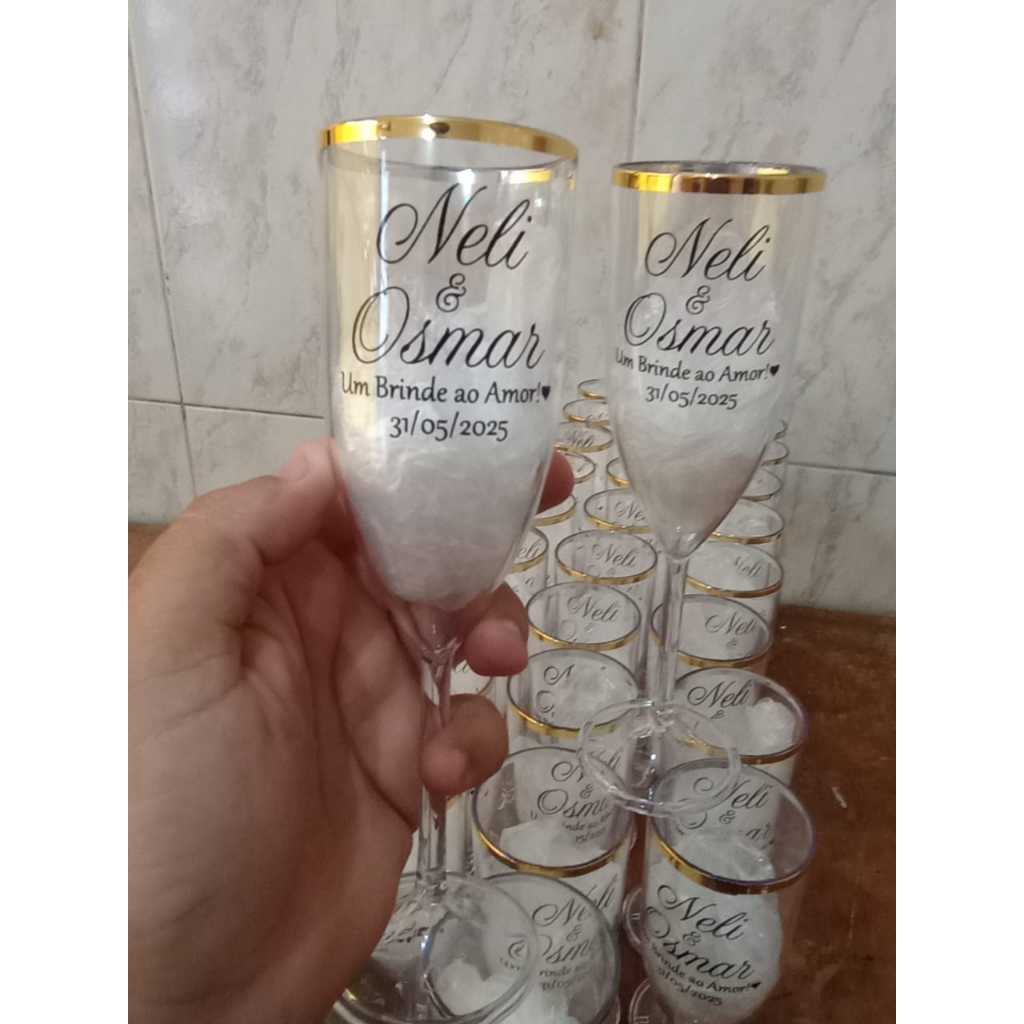 Taças De Champanhe Personalizada Com Borda Dourada