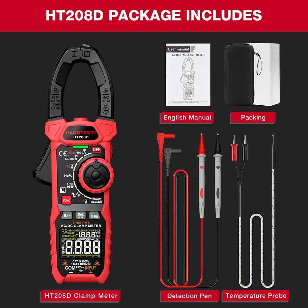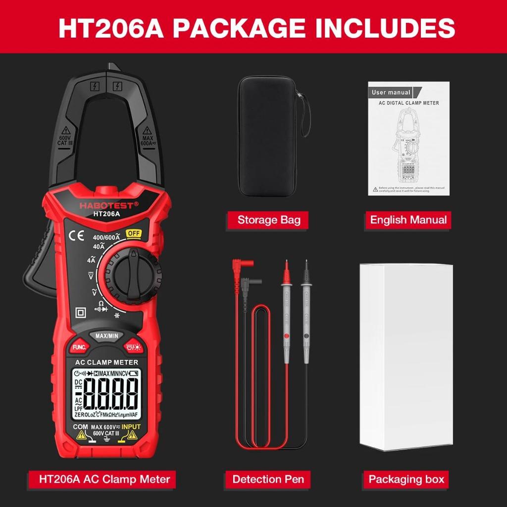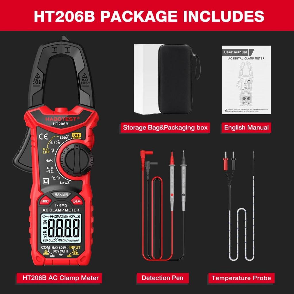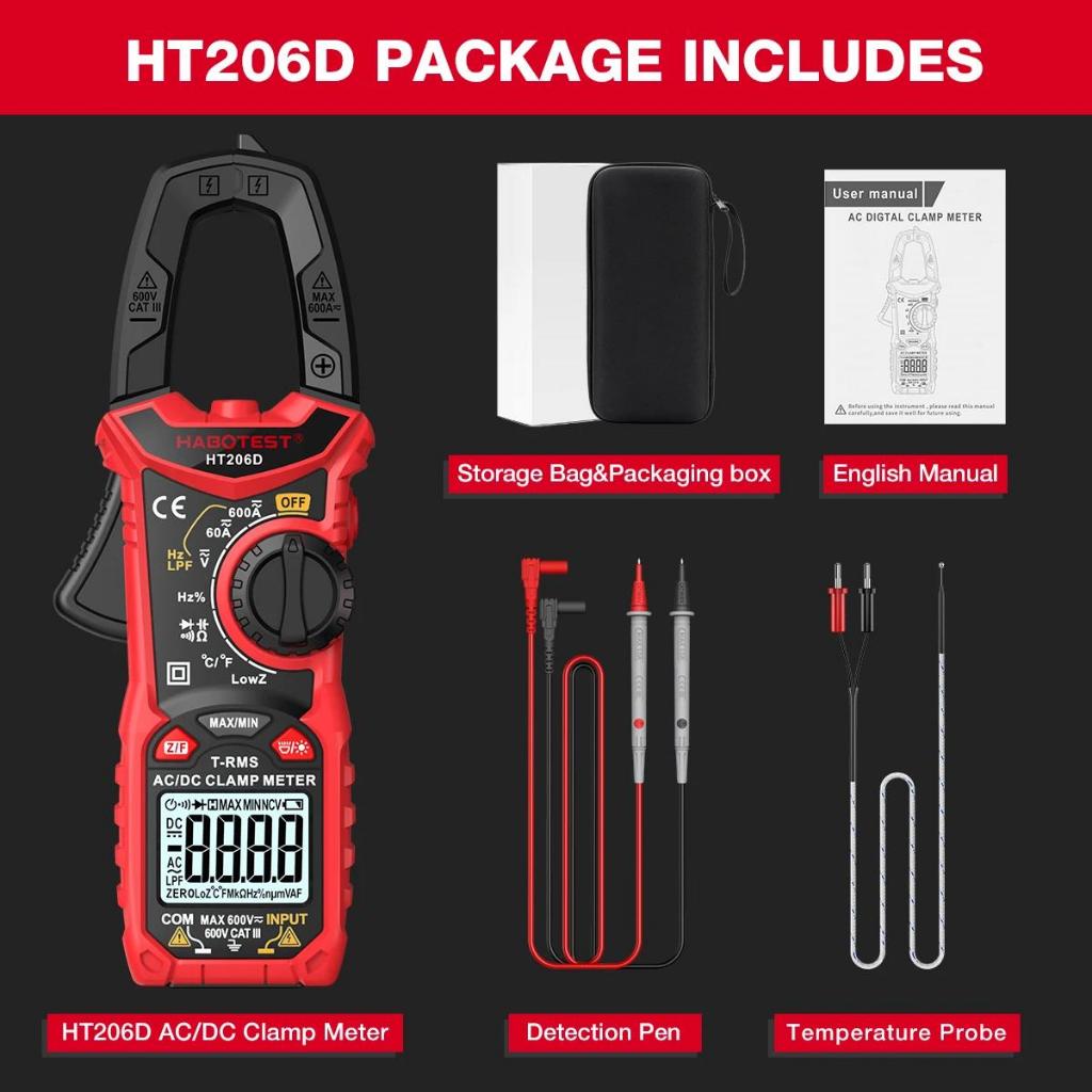 HABOTEST HT206D Alicate Medidor AC/DC 60A/600A T-RMS Multímetro Digital HT200D HT203D HT205 HT207 HT208