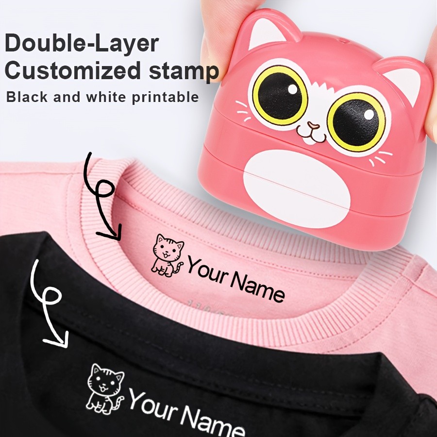 Nova [Personalização] Selo de nome de camada dupla em fonte branca e preta, adequado para imprimir roupas, personalizar