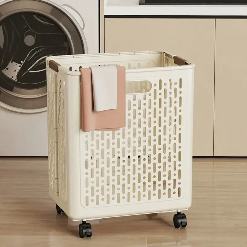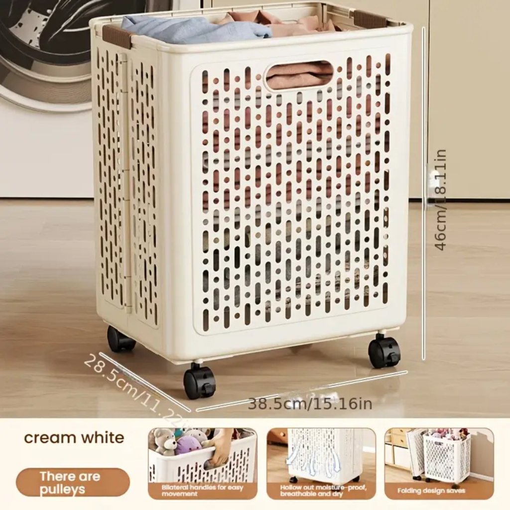 Cestos De Roupa Suja Retrátil Dobrável De Chão Com Rodinhas 46x38x28Cm