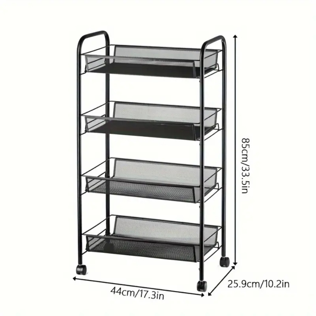 Carrinho Organizador Fruteira Multiuso Em Aço Com Rodinhas 3/4 Prateleiras