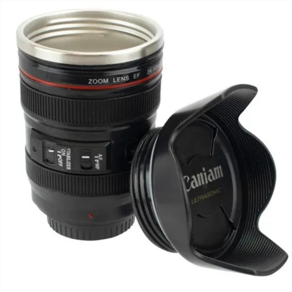 Copo Térmico | Formato Lente Esf De Câmera | Preto - 350ml