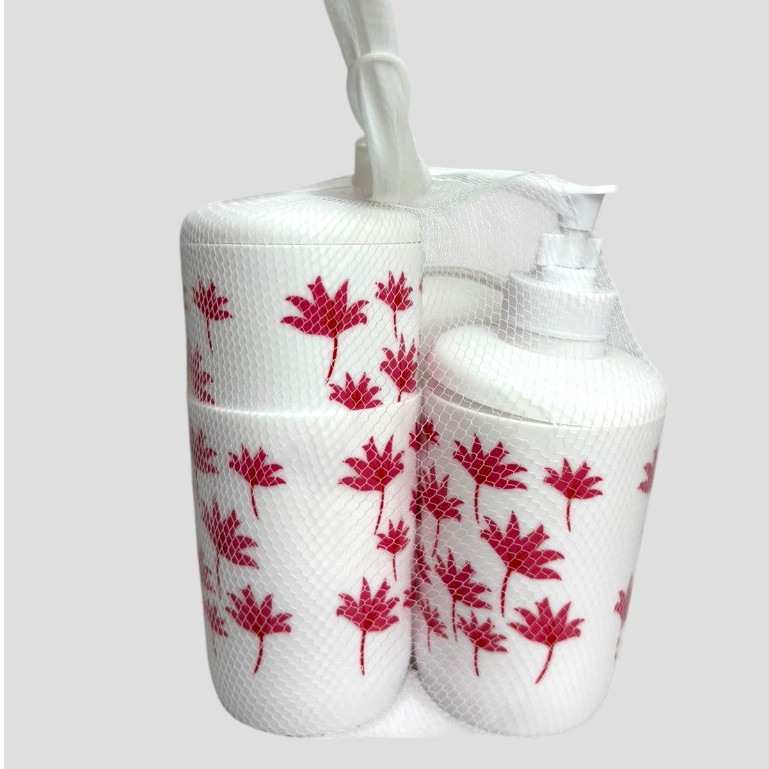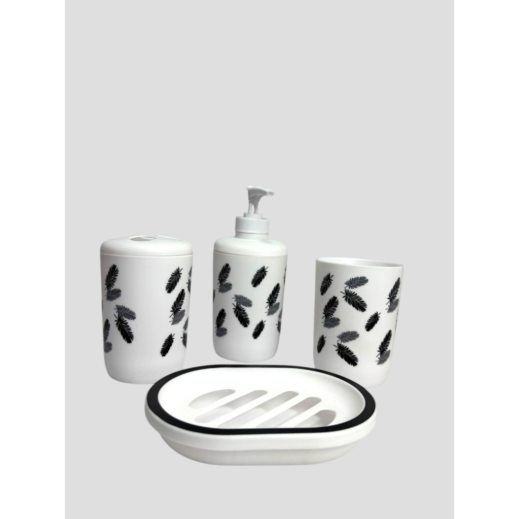 Conjunto de Acessórios de Banheiro Elegante - 4 Peças com Estampa de Folhas