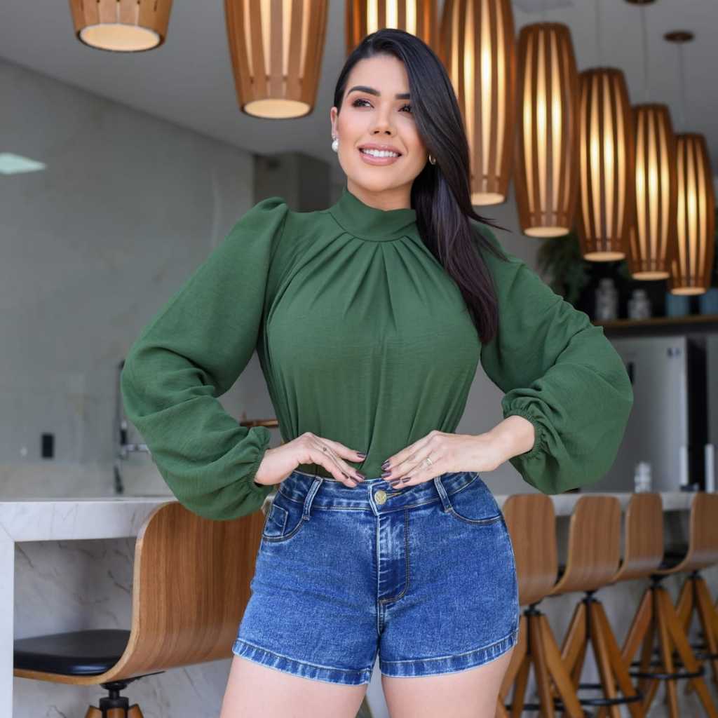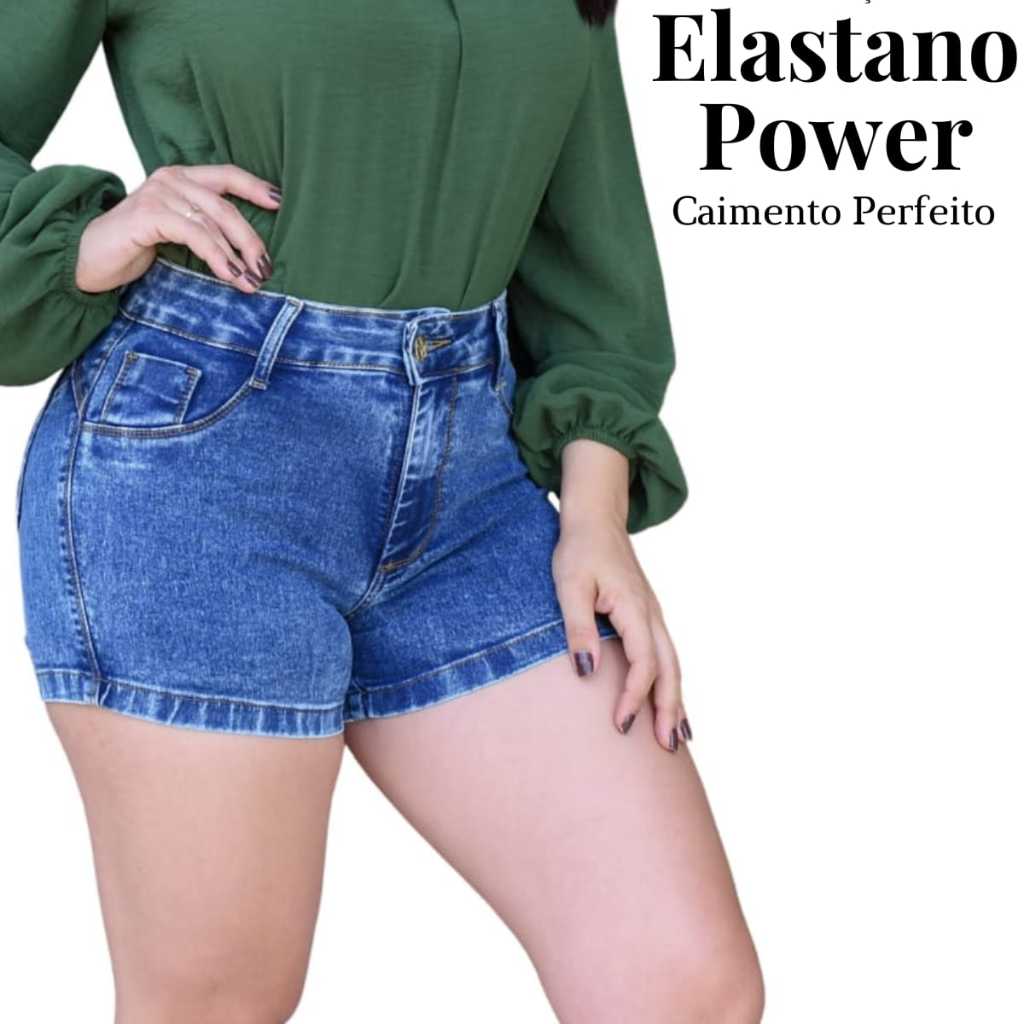 Short Jeans Feminino Empina Bumbum Cintura Alta com Elastano Power - Modelagem Premium