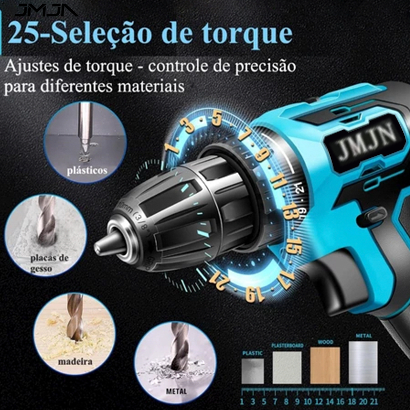 Parafusadeira Furadeira Sem Fio 48V JMJN com 2 Baterias e Maleta