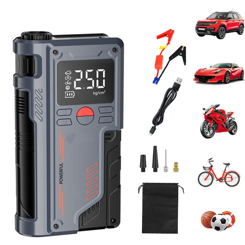 JMJN Compressor de Ar Portátil 7 em 1 com Power Bank 8000mAh Bomba Inflador 12V Calibrador Digital para Carro Moto Bike